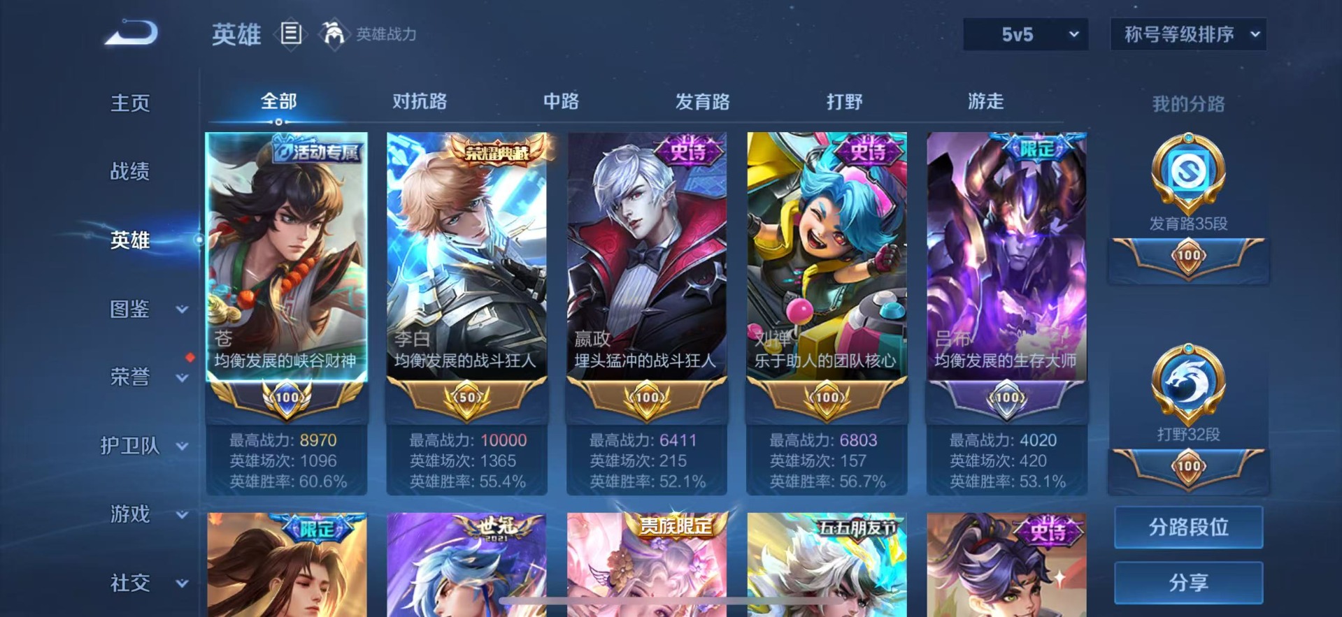 - PX_2095066-实名: 可修改 贵族等级: V3 英雄数: 108 皮肤数: 62 限定皮: 鸣野蒿,愿照·众生和