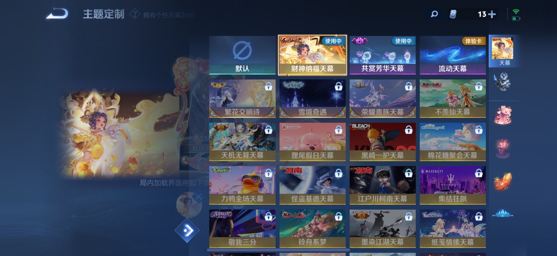 刘邦夺宝奇兵,夏侯惇朔风刀,老夫子醍醐杖,沈梦溪星空之诺,沈梦溪大漠名商,盾山御銮,曹操烛龙,苏烈千军破阵,典韦穷奇,典韦蓝屏警告,达摩沙漠行僧,牛魔御旌,项羽苍威无极,鲁班七号狮舞东方,吕布猎兽之王,镜青焰无极,兰陵王金庭之子,裴擒虎擒涛扼浪,鲁班大师探海日志,明世隐疑决卦,蒙犽狂想玩偶喵,马可波罗暗影游猎,白起狰,鬼谷子原初探秘者,张良古海寻踪,女娲朔望之晖,桑启海盐诗旅,狄仁杰万华元夜,嬴政白昼王子,芈月重明,程咬金演武夺筹,李元芳银河之约,李元芳云中旅人,弈星混沌棋,米莱狄御霄,钟馗神迹守卫,钟馗驱傩正仪,狂铁御狮,太乙真人饕餮