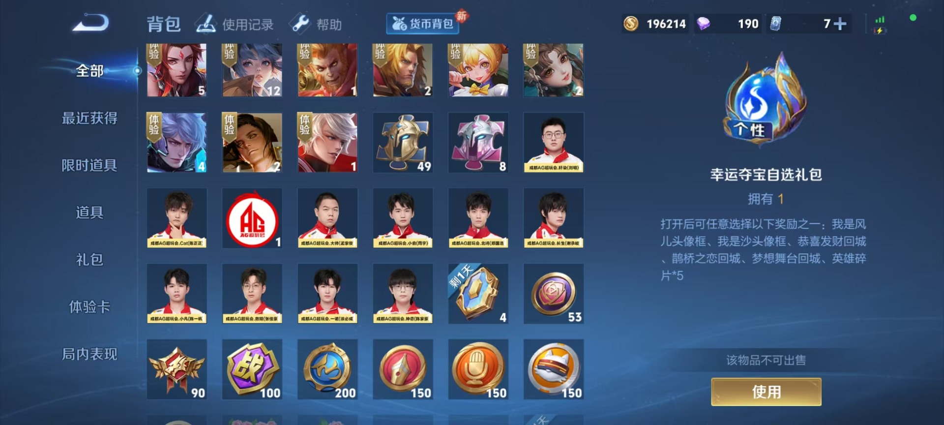 - [12222764]V8 2典藏 1珍品传说 9传说 126英雄 240皮肤 可修改实名 优质装备:鸣剑·曳影,弑枪猎影(韩信典藏),怪盗基德,末日机甲-孙尚香(绿蚂蚱),音你闪耀(rap皮) 传说皮:乘龙·问璇玑(孙尚香年限),九山相柳,祥瑞亨通 珍宝阁皮:胡桃夹子,女武神 限定皮:愿照·山河定(司空震年限),逐霄战戟,鸣野蒿,至尊宝,白晶晶,神威(电光马子),遇见飞天,五谷丰年,冰锋战神,武圣,李小龙,猪悟能,玉兔公主 史诗皮:鸭鸭历险记-刘禅,狼魂孤将,化蝶舞,星界战将,石田雨龙,茶境仙,东方月初,蒙犽顽岩魄,蔬乡物语(鲁班七号),百相守梦-百里守约,紫霞仙子,黄金分割率,特工魅影,千年之狐,匿光侦查者,江河有灵,百解令(蒙犽),蒙恬荣光圣徽,魅语,晚萤,偶像歌手,暗夜猫娘,末日机甲-吕布,猫狗日记-孙策,乱世虎臣,节奏热浪,修罗,女仆咖啡,摇滚巨星,水果甜心,绅士熊喵,天才门将,心灵骇客,德古拉伯爵,幽灵船长,鬼剑武藏,心灵战警,乐园奇幻夜,天秀·启明,舞动绿茵,纤云弄巧,繁星吟游(呼啦呼啦),缤纷独角兽,乘风破浪,逐浪之夏,水晶猎龙者,箭羽风息,金属风暴,原初追逐者,圣诞狂欢,圣诞恋歌,鹰眼统帅,魅力维加斯,黎明之约,赏金猎手