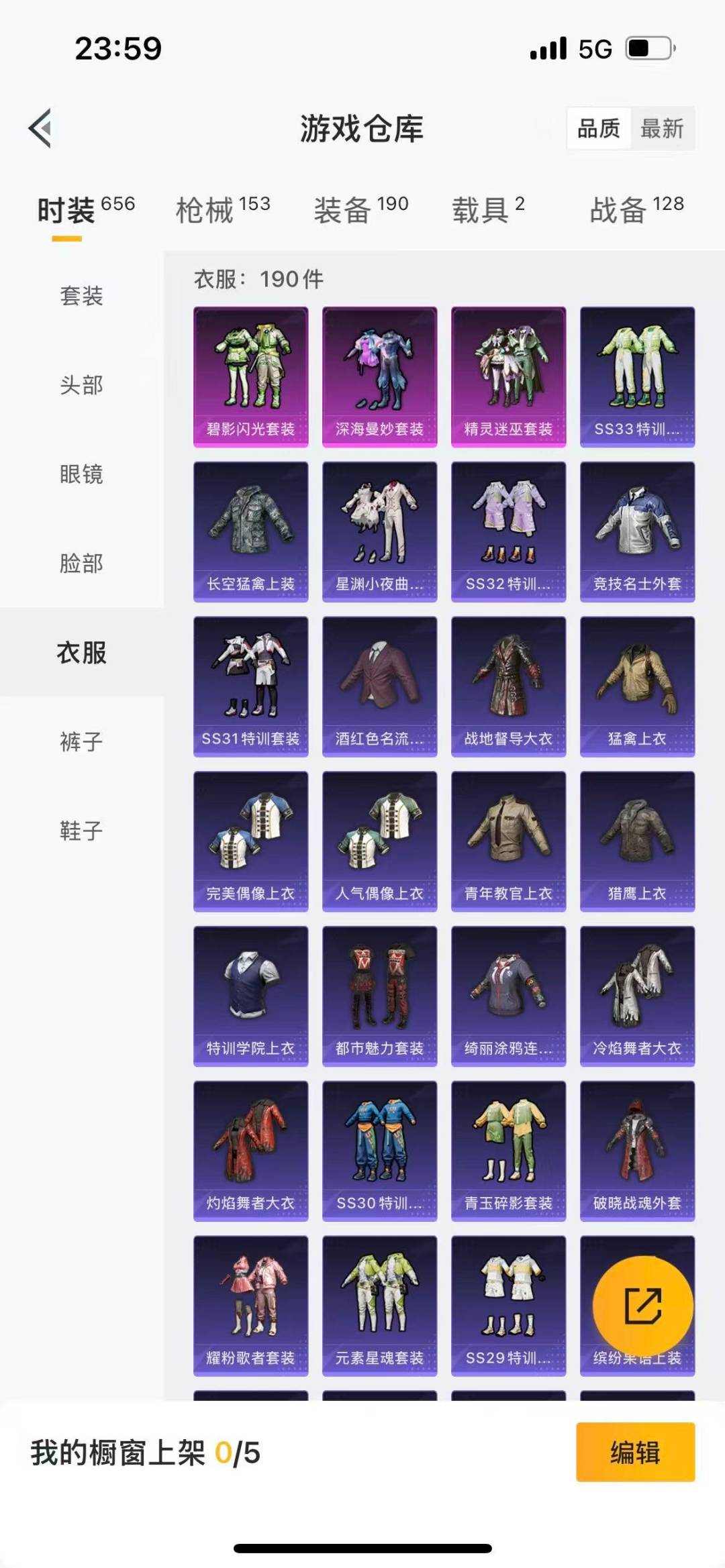 - [12029850]2粉装 6特效枪 1载具 3印记 可二次 可修改实名 身法装备:Mark.06(新蓝螳螂) 优质装备:兰博基尼Aventador SVJ(翡翠绿),AKM炫紫旋律,SLR暗夜玫瑰,UMP45恐龙拽拽,AWM橘柚倾心,SCAR-L-锦绣绵绵,Kar98K-巳巳如意 热门装扮:恐龙拽拽,金丰海韵,鹰眼刺客,暗夜魅影 六级特效枪:六级AKM-炫紫旋律,六级UMP45-恐龙拽拽 五级特效枪:五级Kar98K-巳巳如意,五级SCAR-L-锦绣绵绵,五级AWM-橘柚倾心 四级特效枪:四级SLR-暗夜玫瑰 紫色装扮:SS22特训,娇憨猪猪,萌趣咩咩,SS21特训,SS31特训套装,冰川特警,SS20特训,快乐星愿,萌趣颜团子,特种颜团子,飞驰魅影,音速流光,SS19特训,豚鼠丹丹,吉莉礼服,甜心亚梦,虚音幻奏,雪兔飞飞,电音精灵,瑞龙福将,团圆交子,醒狮腾龙,SS17特训,沁蓝冰爽,异彩先驱,SS18特训,长空猛禽,霓虹极客,霓虹街区,缤纷果语,蓝色守护者,虎虎生威吉莉,骑行爱好者,魅力单车,鹤鸣,麻辣教官,黄色运动,黎明保卫者,黑色伏地魔,龙的传人,龟仙人,冰河战士,龙魂突击队,蝶变,沙漠毒蛇,格斗先锋,沙漠兵团,活力之心,海岛探路者,涂山之恋,滨海假日,幻影武者,夏日音浪,夜莺强袭者,幻世战舞者,怒火燎原,探宝勇士,滨海厨神,绮丽涂鸦,白色伏地魔,甜蜜告白,福星高照,空岛之星,空投萌叽,竞技达人朋克,甜蜜熊情侣,牛气冲天,灰色格斗者,炫蓝之夏,牛气满满,猛禽,雏菊兔兔,萝兰蝴蝶,SS29特训,湖畔霞光,纯真浪花,热情海星,曼妙人鱼,SS28特训,创世·追猎,Mark.06(新蓝螳螂),鱼渊荷华,玉兔迎春,燕燕于飞,巳巳如意,竞技名士,惊鸿侠骨,SS24特训(SS24特训套装),SS25特训,锦衣飞扬,焰鹰斗篷,幻羽潜行,幽夜迷踪,SS27特训,Alan Walker,浪漫天命,SS26特训,隐空刺,蓝冰羽,SS32特训服(SS32特训套装),绯格组合,萌黄之夏,樱梦幻音,冰冻风暴 优质战备:守护天翼降落伞,创世·救赎降落伞,绮梦流光降落伞,公主华盖飞行器,金丰海韵降落伞,炙焰牛王降落伞,恐龙拽拽降落伞,星之彼岸降落伞,桃粉嫣然降落伞,垂柳戏鸭降落伞
