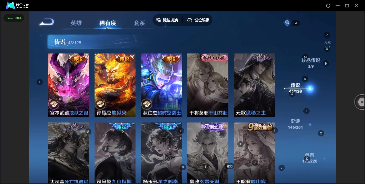 - [11679347]V8 1典藏 16传说 124英雄 290皮肤 可修改实名 优质装备:鸣剑·曳影,云鹰飞将(小将军),末日机甲-孙尚香(绿蚂蚱),地狱火,零号·赤焰,李逍遥,淬星耀世,鹤羽星尊 传说皮:幻光神枪 珍宝阁皮:女武神,玩趣恶龙 限定皮:逐霄战戟,陌上桑,鸣野蒿,夏侯惇霜北刀,白虎志(电光耗子),凤求凰(白切鸡),武陵仙君(小桃花),异界灵契(白毛香),飞衡(韩信年限),高山流水,诗剑行,五谷丰年,游园惊梦,梁祝,天狼狩猎者,天狼溯光者,李小龙,朱雀志(守约年限),如梦令-嫦娥,如梦令-后羿,孙行者,一生所爱,大圣娶亲,引擎之心,青春决赛季,冰霜恋舞曲,山海·玄木吟(马可年限) 史诗皮:谪仙醉月,破空之剑,紫霞仙子,苍穹之光,电玩小子(小书包),白龙吟,黄金分割率,特工魅影,千年之狐,江河有灵,魅语,冰冠公主,偶像歌手,晚萤,龙骑士(小龙虾),末日机甲-吕布,猫狗日记-孙策,猫狗日记-大乔,乱世虎臣,节奏热浪,修罗,女仆咖啡,摇滚巨星,水果甜心,天才门将,星夜王子,心灵骇客,功夫厨神,德古拉伯爵,暗隐猎兽者,幽灵船长,鬼剑武藏,心灵战警,舞动绿茵,地狱岩魂,纤云弄巧,繁星吟游(呼啦呼啦),缤纷独角兽,乘风破浪,逐浪之夏,水晶猎龙者,曙光守护者,箭羽风息,金属风暴,圣诞狂欢,圣诞恋歌,鹰眼统帅,暗夜贵公子,魅力维加斯,奇遇舞章,无心