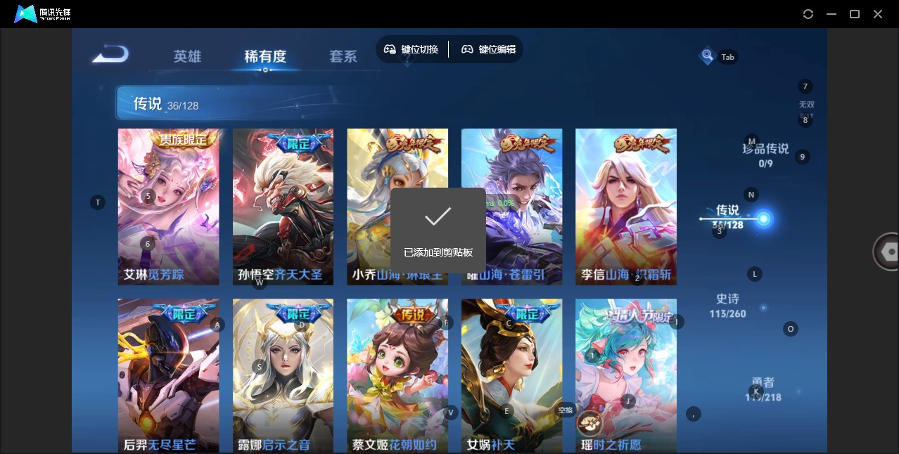 - PX_2096864-实名: 可修改 贵族等级: V5 英雄数: 124 皮肤数: 143 传说皮: 久胜战神 限定皮: 梁祝,飞衡,凤求凰,至尊宝,傲雪梅枪,五谷丰年