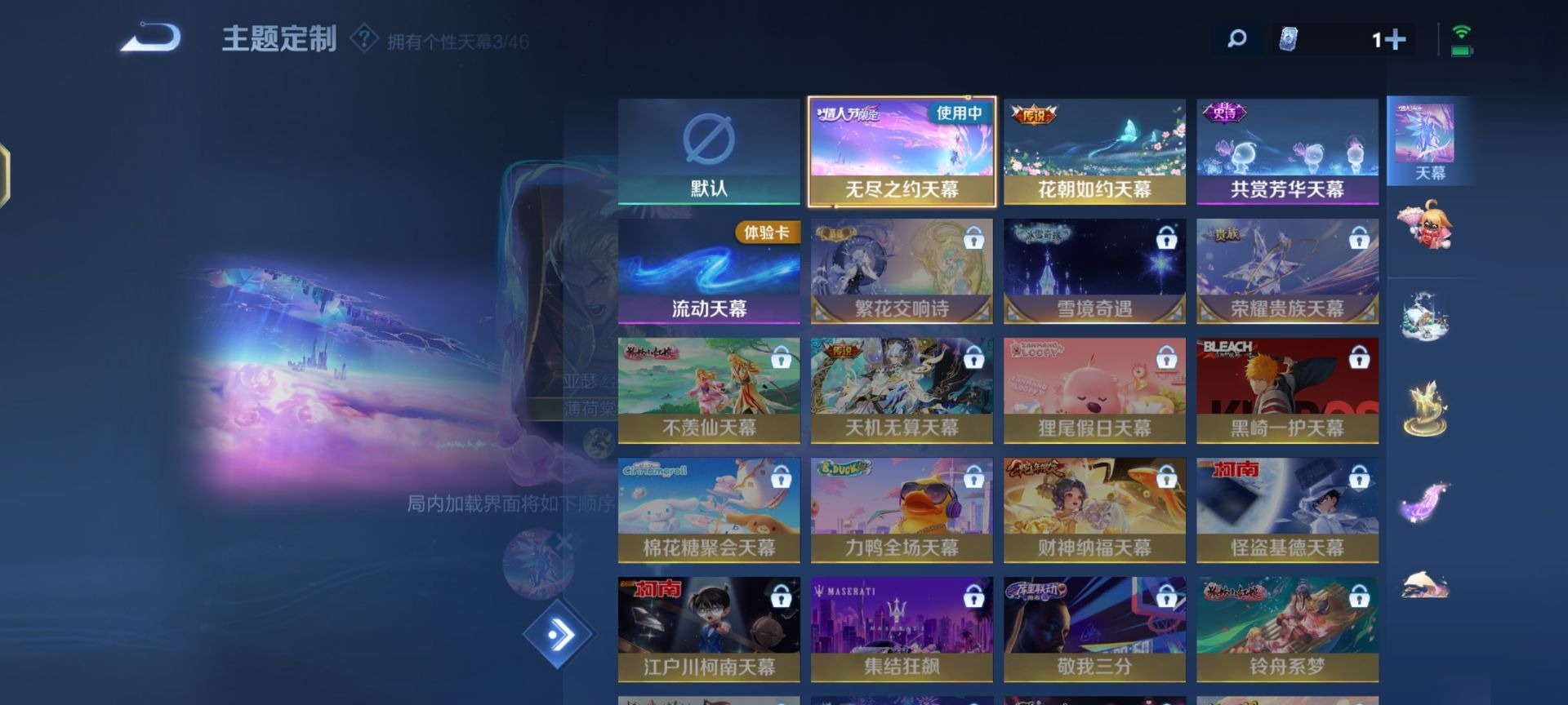 高渐离燃音魔法,夏侯惇乘风破浪,刘备百相守梦,曹操幽灵船长,小乔缤纷独角兽,小乔青蛇,孙尚香时之恋人,不知火舞魅语,赵怀真器灵·浮梦炉,项羽苍穹之光,露娜紫霞仙子,镜玫瑰异探,诸葛亮黄金分割率,司马懿暗渊魔法,宫本武藏鬼剑武藏,杨玉环银翎春语,貂蝉圣诞恋歌,貂蝉唤灵魅影,花木兰水晶猎龙者,蒙犽百解令,杨戬天秀·启明,嬴政摇滚巨星,嬴政暗夜贵公子,雅典娜冰冠公主,雅典娜黎明之约,百里守约特工魅影,墨子龙骑士,墨子金属风暴,王昭君偶像歌手,嫦娥拒霜思,橘右京修罗,大乔白蛇,大乔猫狗日记,大乔乘龙·忆丹青,海诺心动手记,刘邦德古拉伯爵,阿轲暗夜猫娘,阿轲节奏热浪,沈梦溪匿光破解者,铠曙光守护者,伽罗箭羽风息,廉颇地狱岩魂,伽罗琥珀纪元,孙策猫狗日记,鲁班七号电玩小子,吕布圣诞狂欢,吕布末日机甲,刘禅天才门将,刘禅绅士熊喵,公孙离无限星赏官,亚连糖绘人间,兰陵王暗隐猎兽者,李白谪仙醉月,苍狼魂孤将,李白千年之狐,安琪拉心灵骇客,安琪拉乘龙·聚宝船,安琪拉时之奇旅,艾琳奇遇舞章,西施诗语江南,白起星夜王子,白起苍鳞隐世,亚瑟心灵战警,桑启奇遇星旅,程咬金功夫厨神,百里玄策原初追逐者,李元芳逐浪之夏,蔡文姬舞动绿茵,瑶遇见神鹿,弈星滕王阁序,娜可露露晚萤,钟馗乐园奇幻夜,关羽决胜骁骑