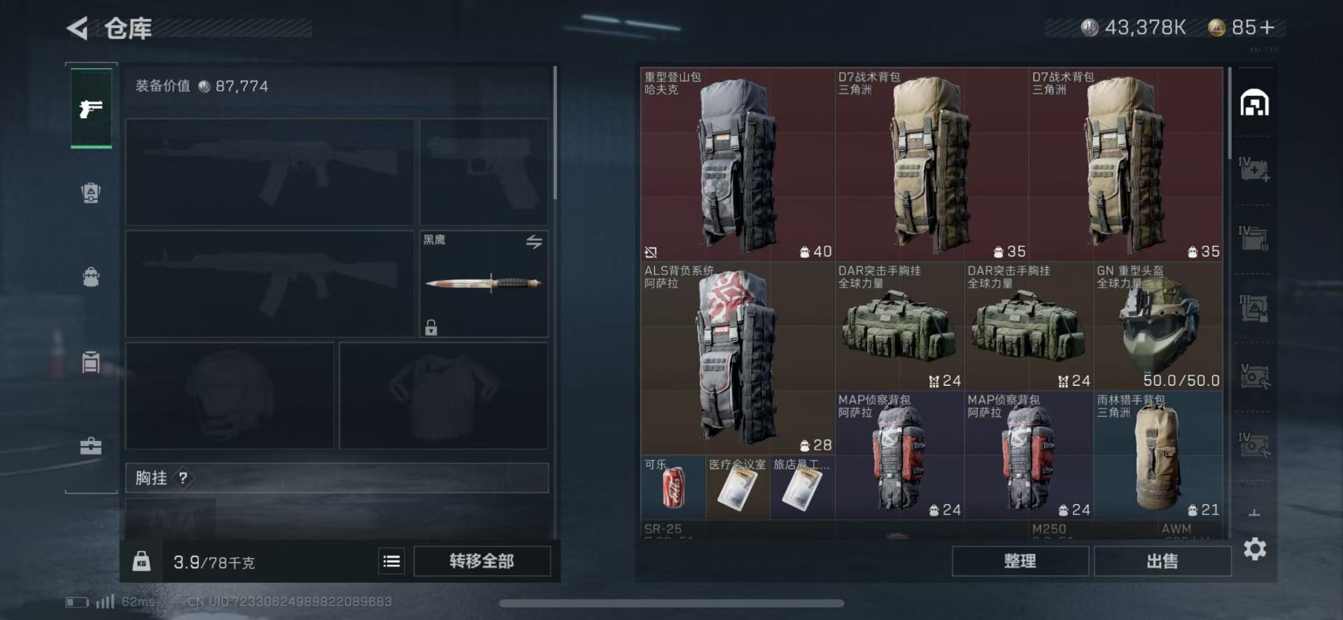 - [12026202]总资产:174.5 7传说枪械 顶级安全箱(3×3)9.15号到期 可二次 可修改实名 优质装备:顶级安全箱(3x3) 烽火地带段位:青铜 全面战场段位:无段位 哈夫币:3.630 传说武器皮肤:M4A1突击步枪-阿米娅,CAR-15突击步枪-阿米娅,复合弓-黑-天际线,AK-12突击步枪-特斯拉线圈,SR-3M紧凑突击步枪-特斯拉线圈,UZI冲锋枪-特斯拉线圈,勇士冲锋枪-能天使-午夜邮差 史诗武器皮肤:MP5冲锋枪-深海恐惧,SV-98狙击步枪-林中猎手,M250通用机枪-囚徒