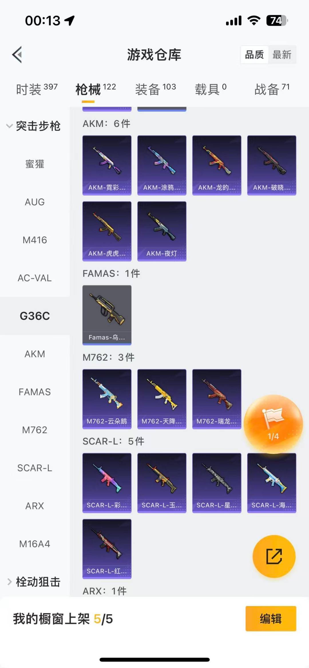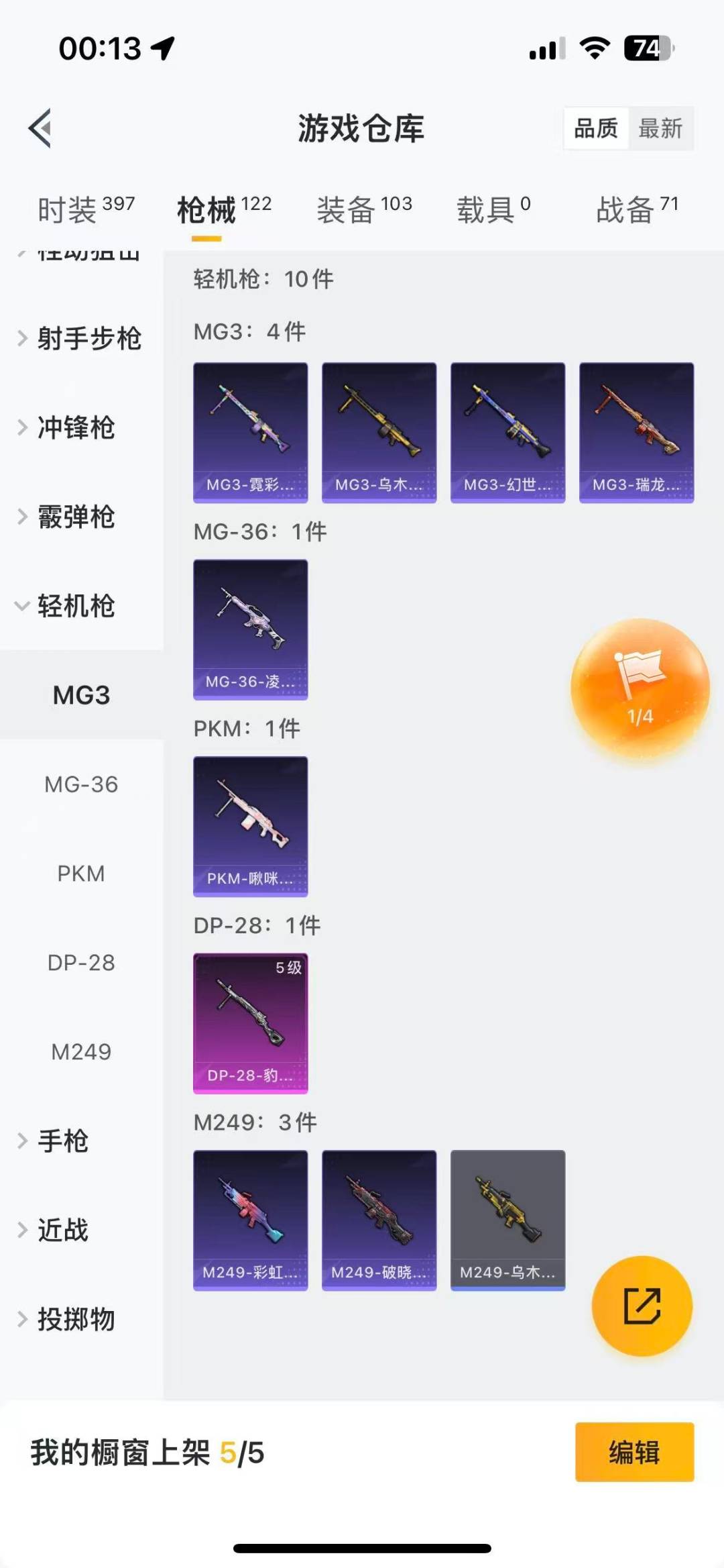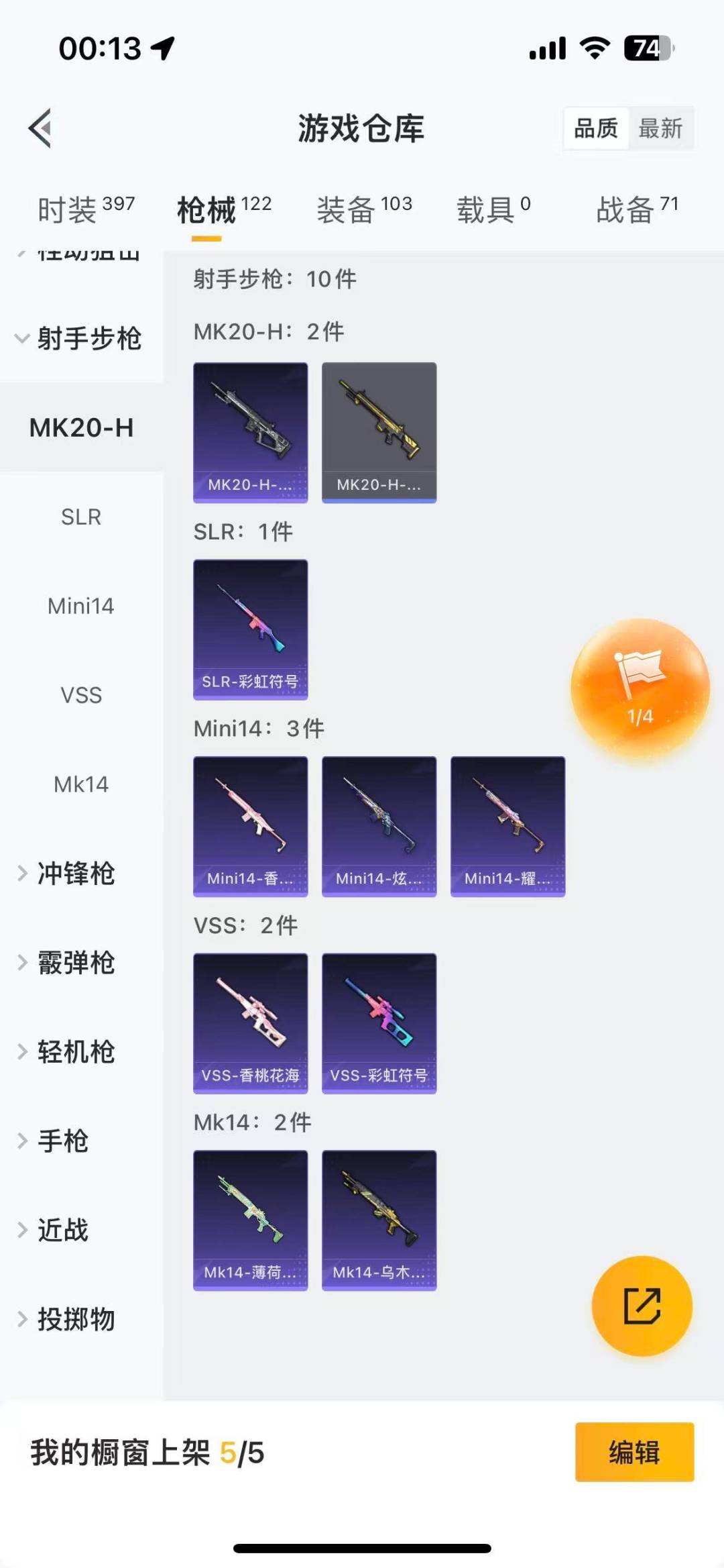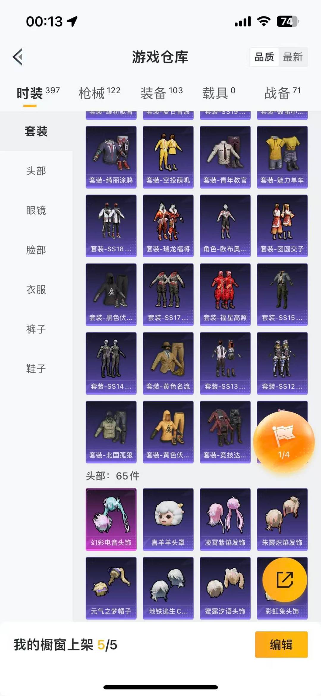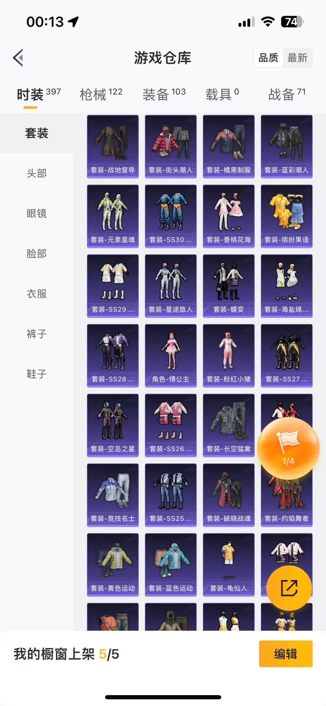 - PX_2091215- 苹果手Q-4王牌印记-1粉装-1特效枪-1载具-17231热力值-42套装-61枪皮-1卓越印记-0传奇印记 【1粉装】,时光之吻 【1特效枪】Mk14-甜梦熊击-5级 【1稀有紫装】,暗影哥特, 【1稀有载具】,宝马M4(圣保罗黄), 【42稀有时装】,SS33特训,极速光影,暗影哥特,顶瓜瓜,狂沙舞者,白糯汤圆,福星高照,夏日音浪,白色伏地魔,冰川格斗者,湖蓝色名流,