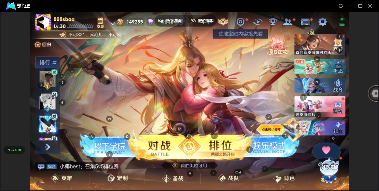 - PX_2099280-实名: 可修改 贵族等级: V2 英雄数: 78 皮肤数: 42 荣耀水晶: 幻阙歌
