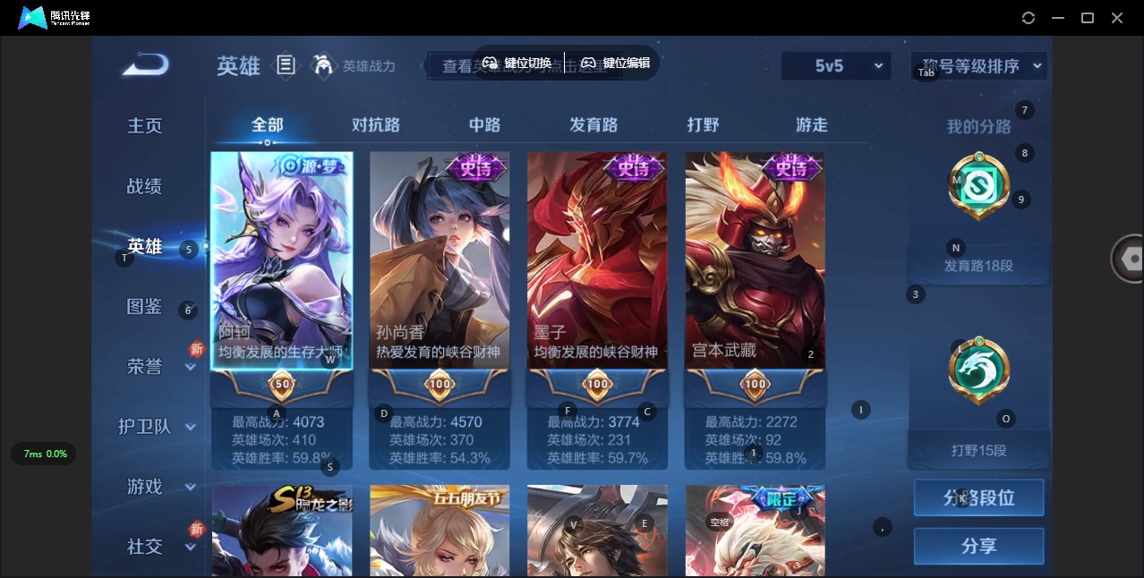 - PX_2084965-贵族等级: V4 英雄数: 86 皮肤数: 51 传说皮: 挚爱之约