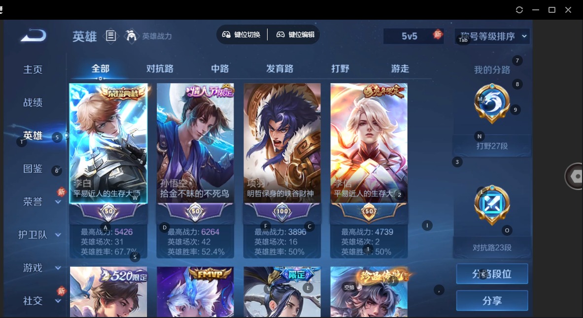 - [11527095]V3 5传说 120英雄 85皮肤 可修改实名 优质装备:黄金狮子座,久胜战神,仲夏夜之梦(大飞蛾) 传说皮:幻光神枪 珍宝阁皮:妄想食味 限定皮:鸣野蒿,五谷丰年 史诗皮:器灵·浮梦炉,石田雨龙,猫狗日记-孙策,修罗,女仆咖啡,水果甜心,绅士熊喵,心灵骇客,缤纷独角兽,逐浪之夏,水晶猎龙者,金属风暴,鹰眼统帅,魅力维加斯