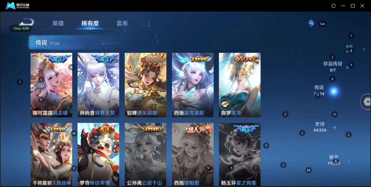 - [11297002]V2 1典藏 113英雄 86皮肤 可修改实名 优质装备:九霄神辉(木兰典藏) 珍宝阁皮:胡桃夹子 限定皮:李小龙 史诗皮:化蝶舞,龙之律动,百相守梦-黄忠,江河有灵,无限星赏官,猫狗日记-孙策,节奏热浪,女仆咖啡,水果甜心,暗隐猎兽者,鬼剑武藏,地狱岩魂,逐浪之夏,曙光守护者,金属风暴,鹰眼统帅,魅力维加斯