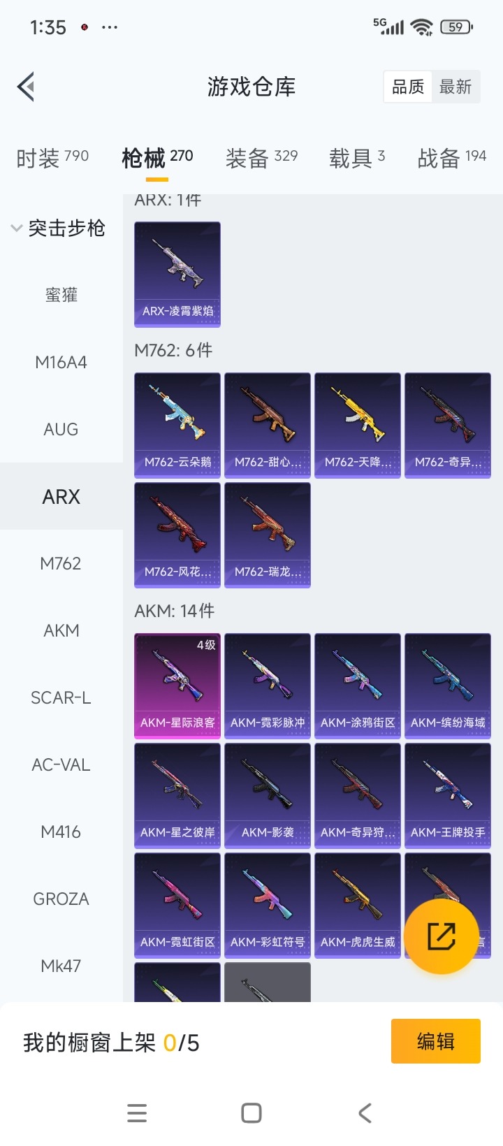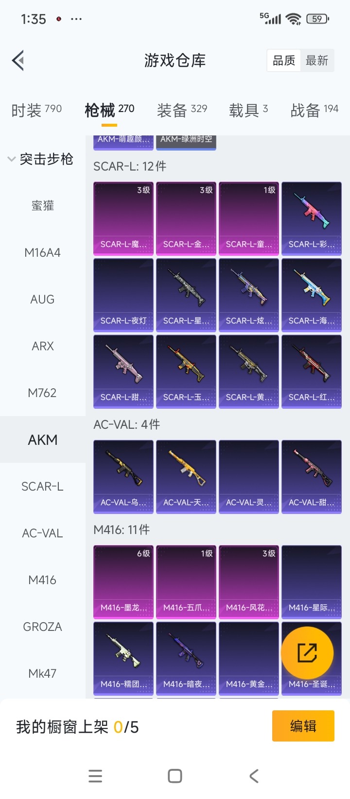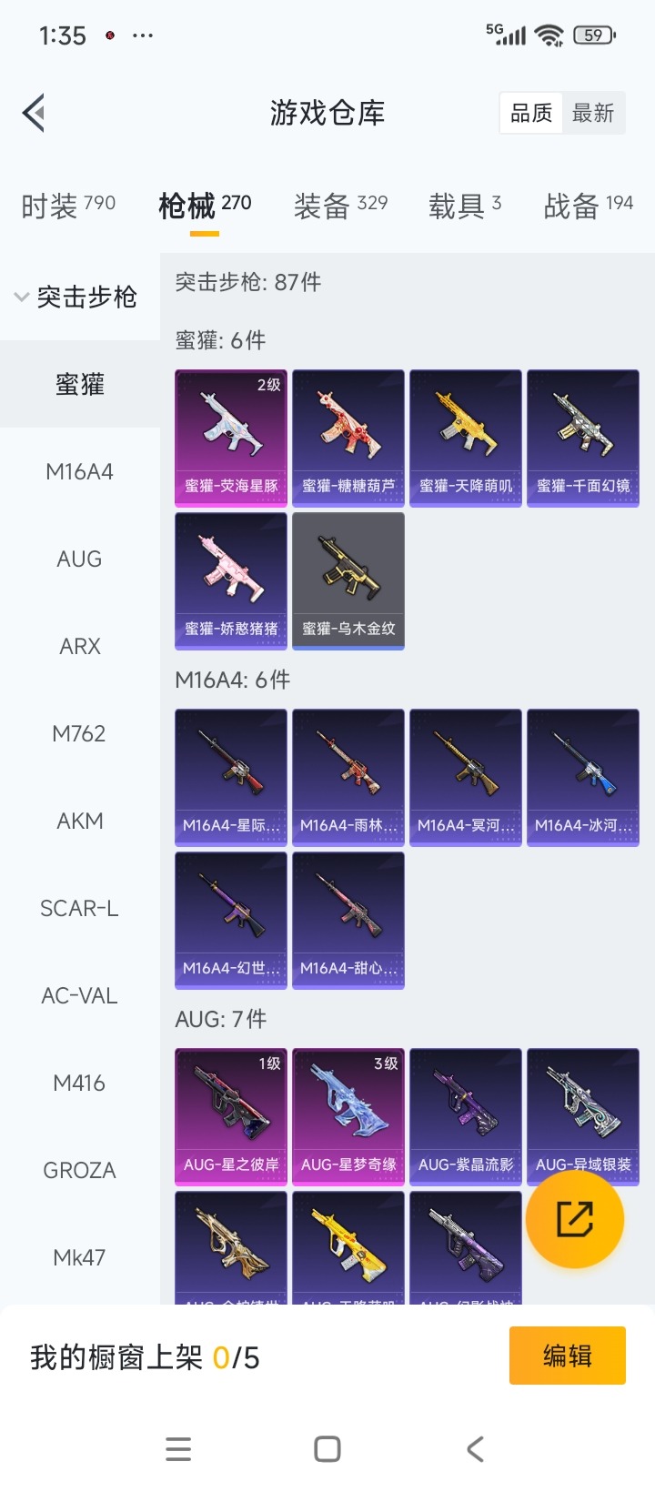 AUG-星梦奇缘,AUG-星之彼岸,AKM-星际浪客,SCAR-L-金蛇镇世,SCAR-L-童趣迷兔,M416-墨龙九天,M416-风花雪月,M416-五爪金龙,GROZA-镜光银凌,Kar98K-巳巳如意,UMP45-相思残雪