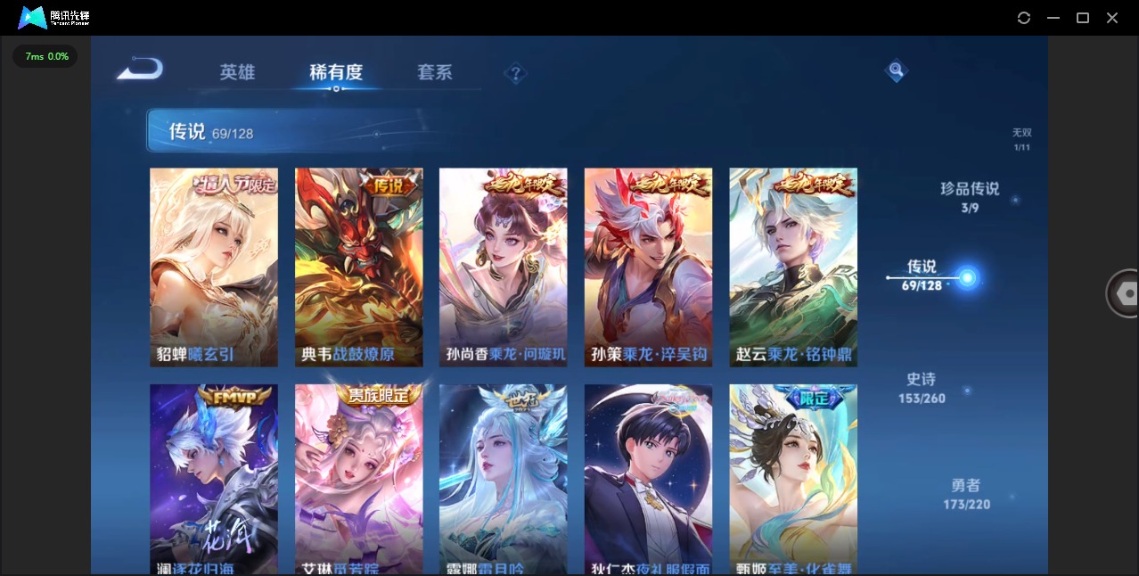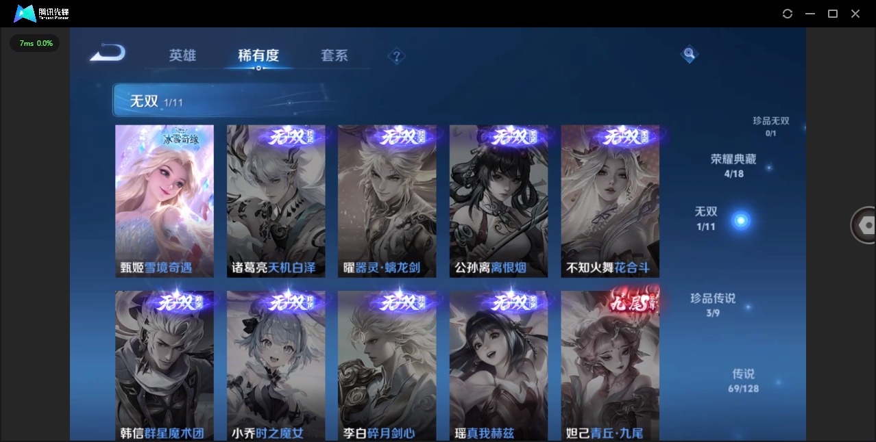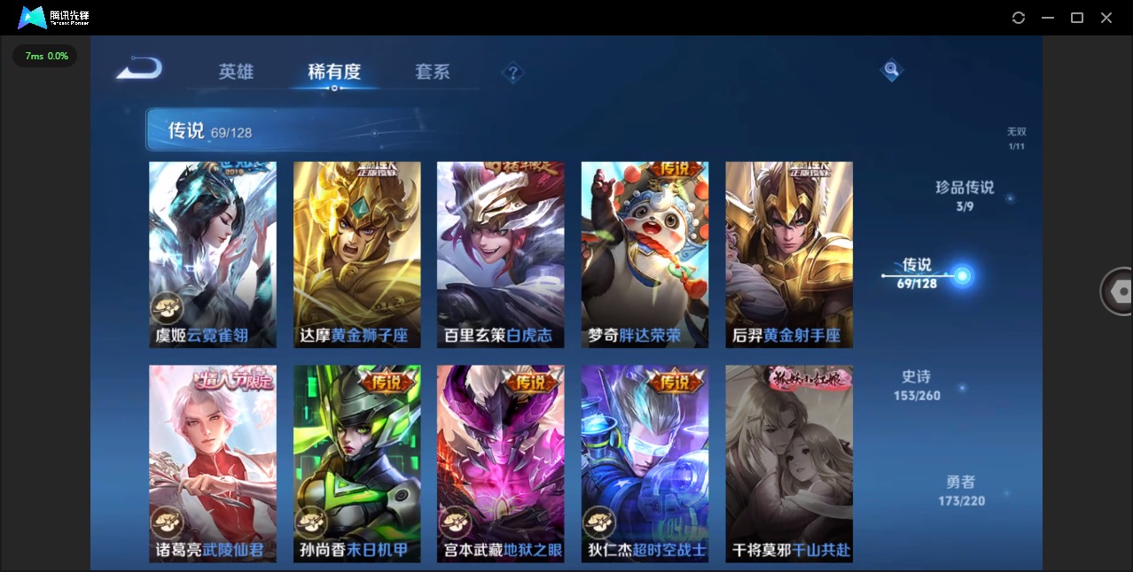 - [11546880]V7 1典藏 1珍品传说 11传说 124英雄 253皮肤 可修改实名 优质装备:赤影疾锋,黑崎一护,黄金射手座,久胜战神,一念神魔,地狱火,时之恋人-刘备(电焊工),无双飞将,燃星之曲 传说皮:死亡执政官,落雪白狼 珍宝阁皮:蔷薇恋人,玩趣恶龙 限定皮:武陵仙君(小桃花),神威(电光马子),遇见飞天,高山流水,五谷丰年,梁祝,李小龙,永曜之星,默契交锋-花木兰,大圣娶亲,引擎之心 史诗皮:赞萌露比,鸭鸭历险记-刘禅,化蝶舞,龙之律动,石田雨龙,百相守梦-周瑜,百相守梦-黄忠,紫霞仙子,苍穹之光,特工魅影,千年之狐,永昼,魅语,无限星赏官,冰冠公主,猫狗日记-孙策,修罗,女仆咖啡,摇滚巨星,水果甜心,星夜王子,心灵骇客,功夫厨神,德古拉伯爵,暗隐猎兽者,幽灵船长,鬼剑武藏,心灵战警,乐园奇幻夜,地狱岩魂,纤云弄巧,繁星吟游(呼啦呼啦),缤纷独角兽,乘风破浪,逐浪之夏,水晶猎龙者,金属风暴,原初追逐者,圣诞狂欢,圣诞恋歌,鹰眼统帅,王者之锤,黎明之约,奇遇舞章,无心,未来纪元-赵云
