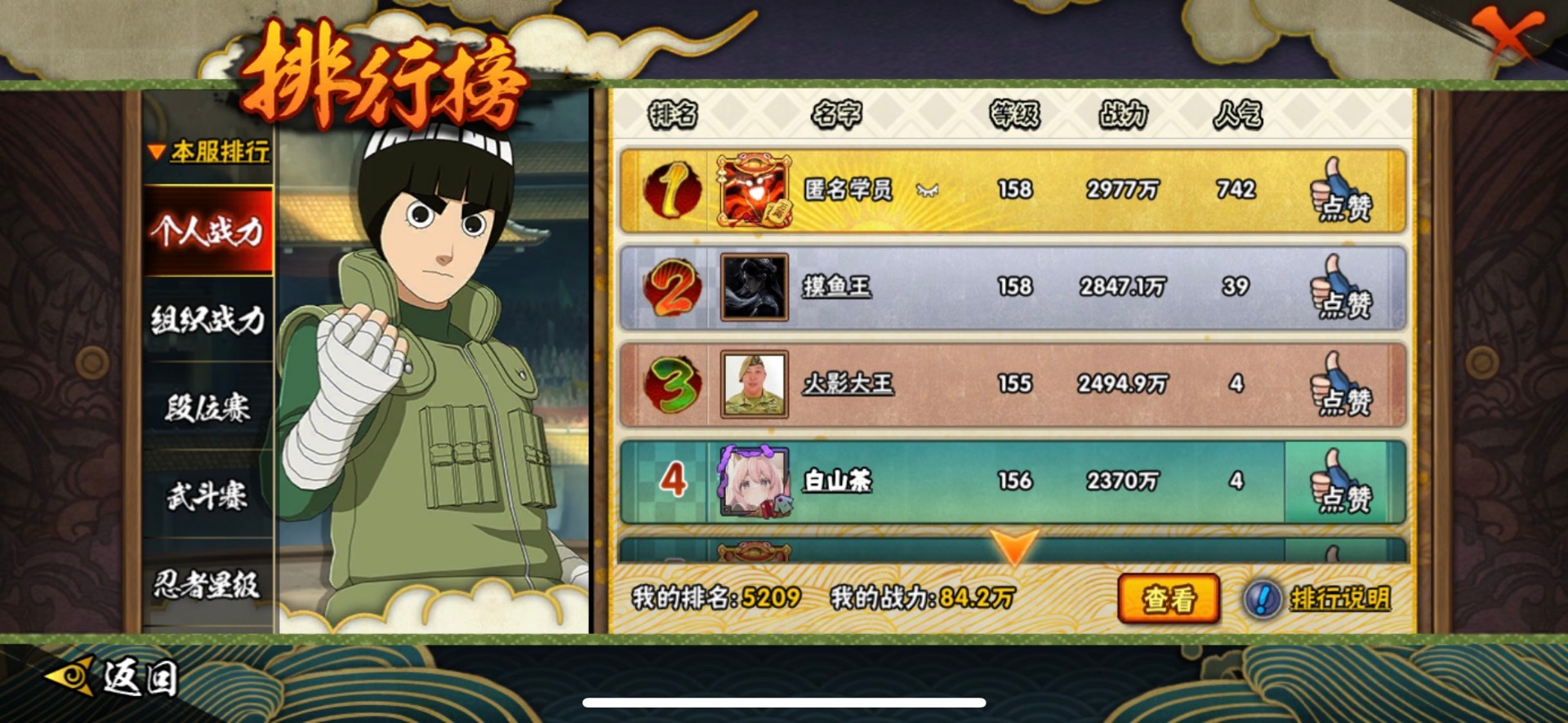 - 火影忍者手游/QQ/苹果QQ1-100区/1区李洛克
