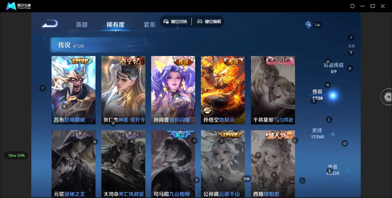 - PX_2067969-??金商家·终身售后·找回包赔】-ASYw5457-【可二次】-安卓Q-122英雄-284皮肤-210铭文-贵族积分4w【贵族7】【1典藏·6传说·1天幕·4按键】【因赛季更新游戏段付以上号为准!】 【荣耀典藏】:李白鸣剑曳影 【天幕】:共赏芳华 【内测皮肤】:孙尚香蔷薇恋人,嬴政优雅恋人,狂铁特工战影 【传说皮肤】:狄仁杰超时空战士,貂蝉仲夏夜之梦,后羿黄金射手座,诸葛亮鹤