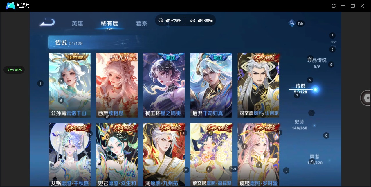 - [11315068]V7 1典藏 6传说 125英雄 211皮肤 可修改实名 优质装备:鸣剑·曳影,地狱之眼,淬星耀世,超时空战士-狄仁杰 传说皮:乘龙·铭钟鼎(赵云年限) 珍宝阁皮:蔷薇恋人 限定皮:愿照·山河定(司空震年限),逐霄战戟,鸣野蒿,五谷丰年,梁祝,龙胆,引擎之心,百木心枪 史诗皮:化蝶舞,星界战将,百相守梦-周瑜,茶境仙,破空之剑,蔬乡物语(鲁班七号),超元猎域,百相守梦-百里守约,紫霞仙子,特工魅影,匿光破解者,百相守梦(刘备),电玩·爆裂旋风,江河有灵,百解令(蒙犽),高渐离燃音魔法,蒙恬荣光圣徽,偶像歌手,魅语,无限星赏官,冰冠公主,乱世虎臣,节奏热浪,修罗,摇滚巨星,水果甜心,天才门将,星夜王子,德古拉伯爵,暗隐猎兽者,幽灵船长,鬼剑武藏,纤云弄巧,拒霜思,乘风破浪,逐浪之夏,水晶猎龙者,圣诞恋歌,鹰眼统帅,暗夜贵公子,魅力维加斯,黎明之约,无心,未来纪元-赵云