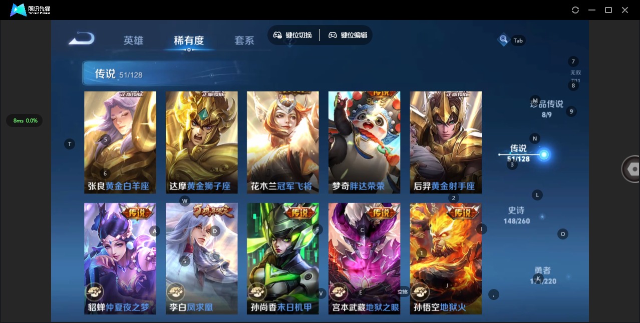 - [11882590]V8 1典藏 18传说 124英雄 256皮肤 可修改实名 优质装备:最初的交响(伽罗典藏),云鹰飞将(小将军),猫影幻舞,久胜战神,一念神魔,仲夏夜之梦(大飞蛾),零号·赤焰,地狱之眼,飞鸢探春,碎云,山海·炽霜斩(李信年限),妄想奇谈,惊梅引,霜月吟,澜逐花归海 传说皮:吕布曦玄引 珍宝阁皮:妄想食味,玩趣恶龙 限定皮:逐霄战戟,鸣野蒿,傲雪梅枪,时之彼端,高山流水,诗剑行,五谷丰年,梁祝,御风骁将(吕布年限),岱宗(典韦年限),朱雀志(守约年限),孙行者,大圣娶亲,引擎之心,青春决赛季,百木心枪,时之奇旅-妲己 史诗皮:化蝶舞,茶境仙,破空之剑,谪仙醉月,上官婉儿群星魔术团,蔬乡物语(鲁班七号),琥珀纪元伽罗,百相守梦-百里守约,百相守梦-黄忠,紫霞仙子,电玩小子(小书包),黄金分割率,特工魅影,千年之狐,电玩·爆裂旋风,浮梦罗烟,真我赫兹(百里守约),匿光侦查者,江河有灵,百解令(蒙犽),高渐离燃音魔法,暗夜猫娘,魅语,晚萤,冰冠公主,末日机甲-吕布,猫狗日记-大乔,时之恋人-孙尚香,乱世虎臣,节奏热浪,修罗,女仆咖啡,水果甜心,天才门将,星夜王子,心灵骇客,功夫厨神,德古拉伯爵,暗隐猎兽者,鬼剑武藏,暗渊魔法,心灵战警,乐园奇幻夜,舞动绿茵,纤云弄巧,拒霜思,乘风破浪,逐浪之夏,月团寄思,曙光守护者,金属风暴,圣诞狂欢,圣诞恋歌,鹰眼统帅,魅力维加斯,无心,未来纪元-赵云