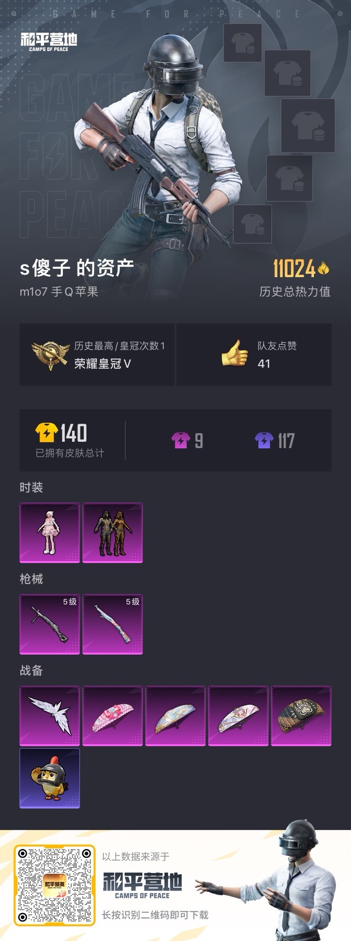 - PX_2091757- 安卓手Q-5王牌印记-4粉装-2特效枪-2载具-44563热力值-116套装-143枪皮-0卓越印记-0传奇印记 【4粉装】,冷漠罗丽,木曜青龙,华贵君王,金风玉露 【2特效枪】AKM-炫紫旋律-7级 Kar98K-巳巳如意-5级 【2稀有紫装】,雪山精英,东方飞龙, 【2稀有载具】,宝马M4(圣保罗黄),特斯拉Model X(珍珠白), 【116稀有时装】,SS31特