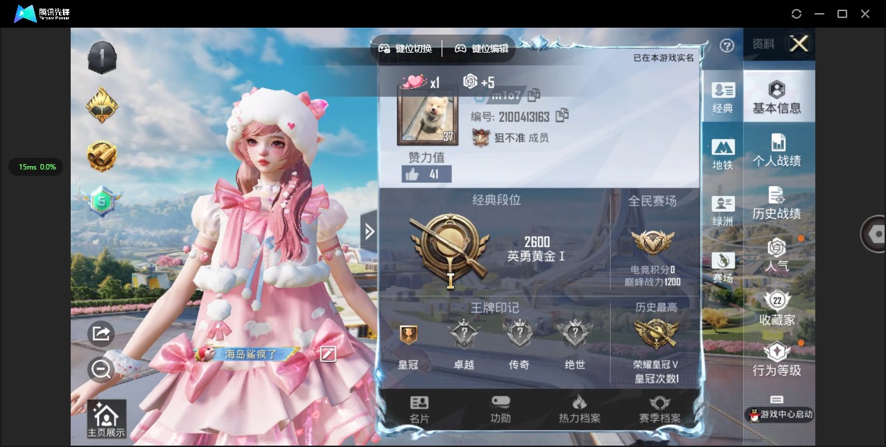 - [11608009]6粉装 7特效枪 15印记 可二次 可修改实名 身法装备:舞王派对(派对舞王、小金鞋),暗影哥特(红眼罩),8号机(新粉螳螂),Mark.06(新蓝螳螂) 优质装备:舞王派对(派对舞王、小金鞋),M416心之恋语,SCAR-L青春物语,M416超新星,MG3酷泡奶龙,七级M416-心之恋语,脆鲨七海,AUG-暖羊咩咩,星穹咏叹调,幻彩电音,Kar98K-巳巳如意 热门装扮:炫光之旅,莲影清波,猪猪侠,深海小丑鱼,派对舞王(小金鞋) 稀有枪皮:DP-28-豹影疾电 六级特效枪:六级SCAR-L-青春物语 五级特效枪:五级Kar98K-巳巳如意,五级DP-28-豹影疾电,五级AUG-暖羊咩咩,五级MG3-酷泡奶龙 三级特效枪:三级M416-超新星 紫色装扮:田园牧歌,轻风白浪,SS22特训,日冕精灵,SS23特训,娇憨猪猪,灵幻魔术师,萌趣咩咩,SS21特训,SS31特训套装,SS2特训,六六大吉,冰川特警,刚毅裁决者,午夜朋克,旭日情侣,极速光影,SS30特训套装,云朵鹅,彩虹兔,雪绒豹,SS33特训套装,顶瓜瓜,诡诞巡游,混沌火种,SS20特训,SS13特训,SS14特训,SS19特训,粉团憨憨,都市漫游者,酒红色名流,酷萌兔限定,野性战心,长空猛禽,霓虹街区,霓虹闪烁,荷畔雨呱,缤纷果语,耀眼新星,苍穹猎鹰,荣耀,蓝彩潮人,蓝色运动,街头潮人,魅力单车,黄色名流,黄色运动,黑色伏地魔,龙的传人,龟仙人,冰河战士,龙魂突击队,蝶变,香桃花海,熔岩游骑兵连帽夹克,沙漠毒蛇,极地朋克,柠萌假日,派对绅士,海岛探路者,海滨突袭者,涂山之恋,深蓝色名流,清新柠檬,坚韧舞者,战地菁英,绮丽涂鸦,甜蜜菠萝,疯狂小兔子,破蛋小黄鸡,甜蜜告白,空岛之星,红色运动,王牌教练,牛气冲天,灰色格斗者,燃烧卡路里,特战英豪,狂沙舞者,小熊娃娃,雏菊兔兔,萝兰蝴蝶,SS29特训,星途旅人,纯真浪花,热情海星,曼妙人鱼,SS28特训,8号机(新粉螳螂),Mark.06(新蓝螳螂),异域银装,鱼渊荷华,玉兔迎春,燕燕于飞,巳巳如意,海琴烟,俏兔智灵,青团波波,糖糖葫芦,棉花软糖,竞技名士,摩登魅猫,暗影哥特(红眼罩),街头风暴,情公主,青芒树下,果汁能量,惊鸿侠骨,甜梦熊熊,神气柴柴,懵萌河马,SS24特训(SS24特训套装),SS25特训,绝对偶像,锦衣飞扬,焰鹰斗篷,幻羽潜行,幽夜迷踪,S