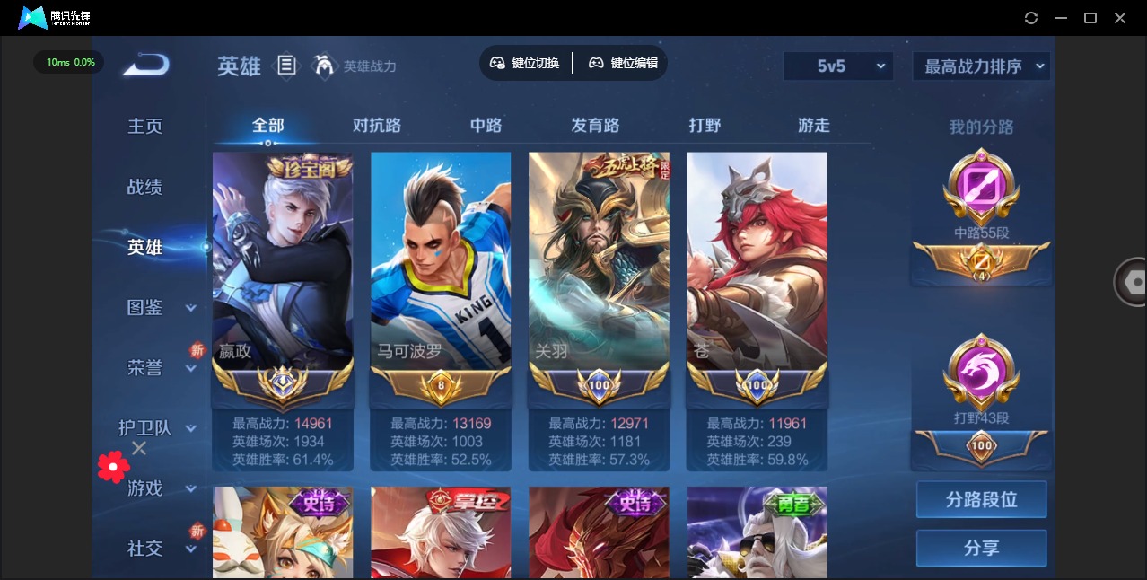 [12110585]V7 8传说 122英雄 134皮肤 可修改实名 嬴政大国标 关羽小国标 苍小国标 优质装备:冠军飞将,云鹰飞将(小将军) 传说皮:乘龙·铭钟鼎(赵云年限),乘龙·淬吴钩(孙策年限),落雪白狼 珍宝阁皮:优雅恋人 限定皮:逐霄战戟,鸣野蒿,白虎志(电光耗子),白鹤梁神女,遇见飞天,武圣,梁祝,李小龙 史诗皮:怒海争锋,决胜骁骑,特工魅影,千年之狐,江河有灵,龙骑士(小龙虾),乱世虎臣,修罗,摇滚巨星,水果甜心,鬼剑武藏,缤纷独角兽,月团寄思,原初追逐者,鹰眼统帅,暗夜贵公子,魅力维加斯,黎明之约