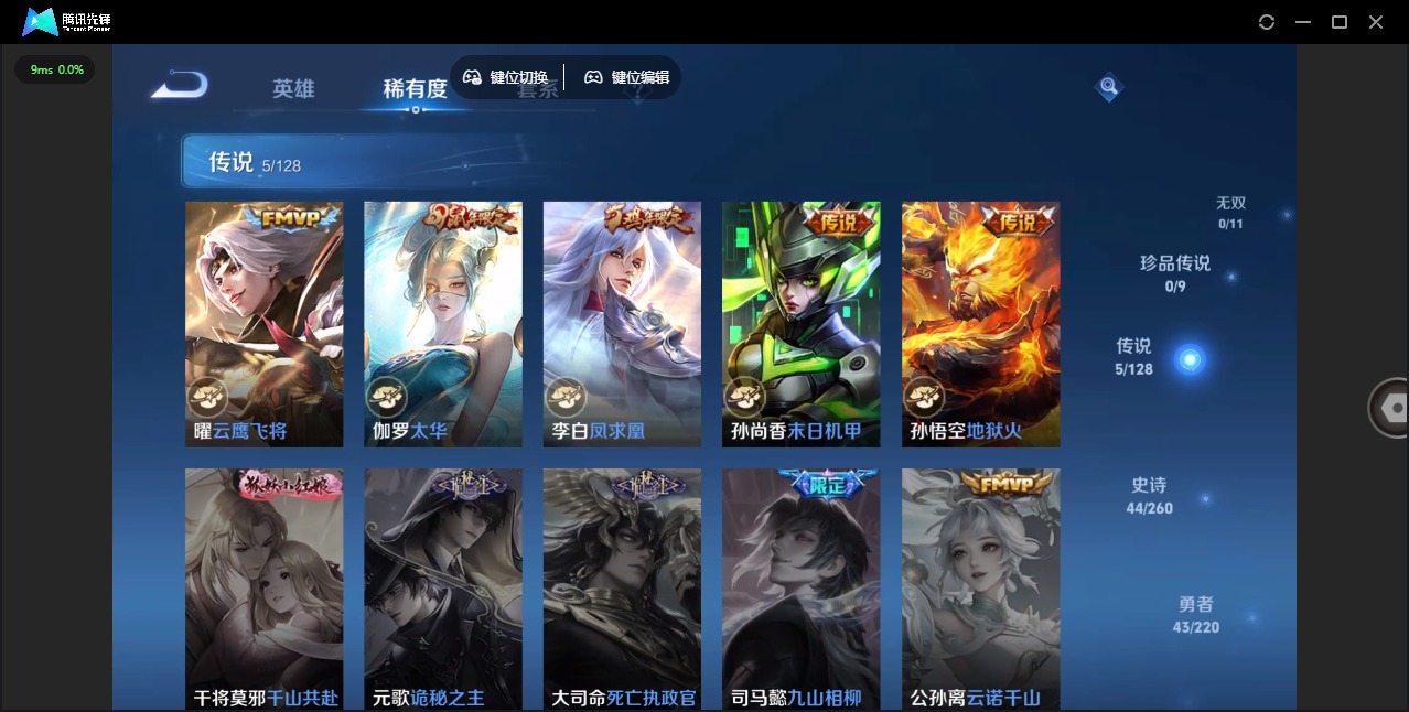 - [12279387]V8 1典藏 19传说 125英雄 222皮肤 可修改实名 优质装备:鸣剑·曳影,云鹰飞将(小将军),绛天战甲(鸡嘴战神),炽阳神光,一念神魔,云霓雀翎,仲夏夜之梦(大飞蛾),李逍遥,淬星耀世,末日机甲-孙策,山海·苍雷引(电光曜子),浮生妄 传说皮:云诺千山 珍宝阁皮:优雅恋人,女武神 限定皮:白虎志(电光耗子),凤求凰(白切鸡),异界灵契(白毛香),时雨天司(水龙头),神威(电光马子),遇见飞天,高山流水,诗剑行,五谷丰年,御风骁将(吕布年限),祈雪灵祝(雪兔子),天狼绘梦者,李小龙,默契交锋-花木兰,大圣娶亲 史诗皮:鸭鸭历险记-刘禅,龙之律动,石田雨龙,织梦人,紫霞仙子,电玩小子(小书包),白龙吟,特工魅影,千年之狐,永昼,江河有灵,魅语,无限星赏官,冰冠公主,偶像歌手,白蛇,晚萤,电玩·爆裂旋风,暗夜猫娘,猫狗日记-孙策,时之恋人-孙尚香,节奏热浪,修罗,女仆咖啡,水果甜心,天才门将,星夜王子,时之奇旅-安琪拉,功夫厨神,德古拉伯爵,暗隐猎兽者,幽灵船长,鬼剑武藏,暗渊魔法,舞动绿茵,地狱岩魂,纤云弄巧,繁星吟游(呼啦呼啦),拒霜思,缤纷独角兽,乘风破浪,逐浪之夏,曙光守护者,热力回旋,箭羽风息,原初追逐者,圣诞恋歌,鹰眼统帅,魅力维加斯,黎明之约,赏金猎手,无心,未来纪元-赵云