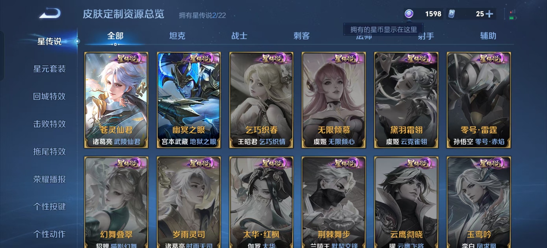 吕布御风骁将,花木兰默契交锋,马可波罗山海·玄木吟,马可波罗深海之息,桑启鸣野蒿,猪八戒猪悟能,孙悟空孙行者,孙悟空至尊宝,妲己时之奇旅,韩信傲雪梅枪,虞姬愿照·岁时盈,娜可露露前尘镜