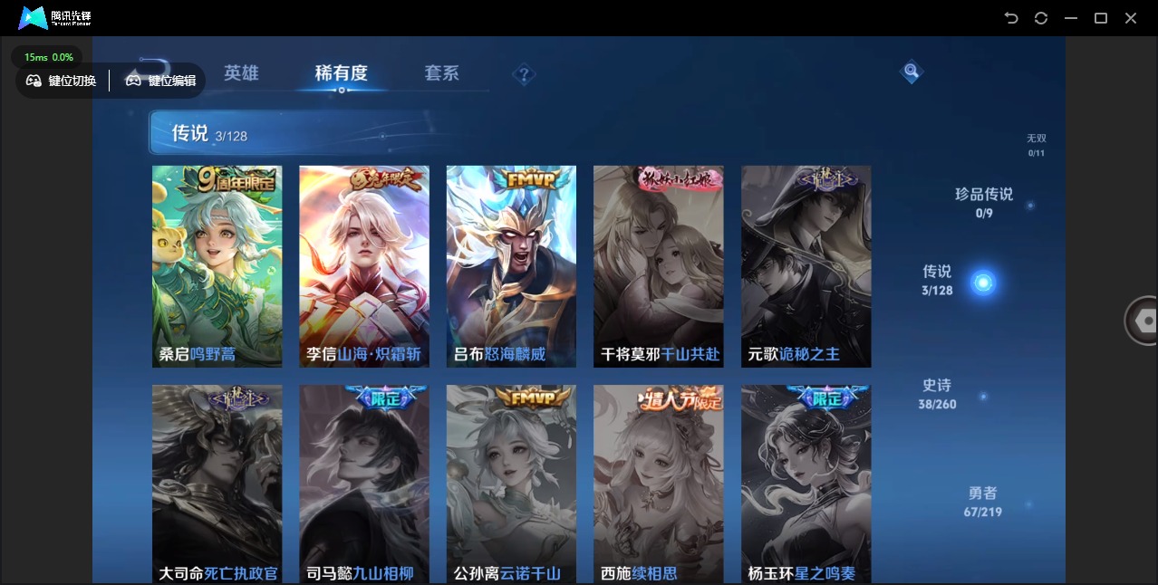 - [12075378]V10 5典藏 3无双 4珍品传说 58传说 125英雄 442皮肤 可修改实名 优质装备:鸣剑·曳影,全息碎影(猴子典藏),九霄神辉(木兰典藏),赤影疾锋,弑枪猎影(韩信典藏),真我赫兹(瑶)(瑶无双),小乔时之魔女(小乔无双),器灵·螭龙剑,江户川柯南,怪盗基德,朽木白哉,黄金狮子座,黄金射手座,云鹰飞将(小将军),绛天战甲(鸡嘴战神),黄金白羊座,猫影幻舞,久胜战神,炽阳神光,一念神魔,云霓雀翎,末日机甲-孙尚香(绿蚂蚱),地狱火,仲夏夜之梦(大飞蛾),音你心动-小乔,零号·赤焰,海洋之心,地狱之眼,飞鸢探春,音你心动-周瑜,胖达荣荣,乞巧织情,时之恋人-刘备(电焊工),游龙清影(小青龙),淬星耀世,超时空战士-狄仁杰,花朝如约(花篮子),无双飞将,音你闪耀(rap皮),碎云,画中仙,浮生妄,记忆之芯(机甲兔),惊梅引,鲁班七号-时之奇旅,霜月吟,澜逐花归海,艾琳觅芳踪,玄雷天君,千劫归真,涂山容容 珍品传说:时之奇旅-孙策 传说皮:典韦战鼓燎原,星之鸣奏,幻光神枪 珍宝阁皮:妄想食味,蔷薇恋人 限定皮:愿照·九州拓(澜年限),愿照·福禄聚(蔡文姬年限),愿照·岁时盈(虞姬年限),愿照·山河定(司空震年限),愿照·众生和(妲己年限),愿照·千秋盛(女娲年限),逐霄战戟,鸣野蒿,至尊宝,白虎志(电光耗子),太华(伽罗年限),傲雪梅枪,绯月行,时之彼端,白鹤梁神女,时雨天司(水龙头),神威(电光马子),遇见飞天,高山流水,诗剑行,怒海麟威,五谷丰年,青龙志(铠年限),冰锋战神,武圣,游园惊梦,梁祝,御风骁将(吕布年限),逐梦之翼,逐梦之音,李小龙,逐梦之影,朱雀志(守约年限),如梦令-后羿,霸王别姬-项羽,霸王别姬-虞姬,默契交锋-花木兰,孙行者,大圣娶亲,青春决赛季,冰霜恋舞曲,蜜橘之夏,深海之息(深海大菠萝),山海·玄木吟(马可年限) 史诗皮:鸭鸭历险记-刘禅,飞车小橘子,器灵·浮梦炉,糖绘人间,瑰影绮梦,化蝶舞,灵蛊蚀心,星界战将,谪仙醉月,龙之律动,石田雨龙,百相守梦-周瑜,茶境仙,怒海争锋,曹操夜都魔契,百相守梦-百里守约,星界特工,百相守梦-黄忠,遇见神鹿,紫霞仙子,苍穹之光,电玩小子(小书包),白龙吟,黄金分割率,特工魅影,千年之狐,江河有灵,匿光侦查者,浮梦罗烟,魅语,无限星赏官,冰冠公主,青蛇,偶像歌手,白蛇,暗夜猫娘,龙骑士(小龙虾),末日
