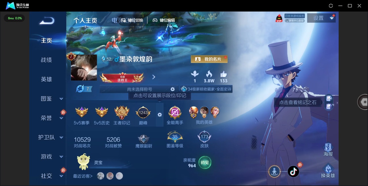 - [12146112]V10 4典藏 1珍品无双 2无双 6珍品传说 53传说 125英雄 394皮肤 可修改实名 优质装备:馥梦繁花,天鹅之梦(小乔典藏),无限飓风号(高达),鸣剑·曳影,碎月剑心(李白无双),器灵·螭龙剑,最初的交响(伽罗典藏),器灵·落星盏,酷洛米之心,大耳狗之梦,朽木白哉,黑崎一护,黄金狮子座,黄金射手座,冠军飞将,绛天战甲(鸡嘴战神),黄金白羊座,猫影幻舞,久胜战神,炽阳神光,一念神魔,末日机甲-孙尚香(绿蚂蚱),地狱火,仲夏夜之梦(大飞蛾),音你心动-小乔,零号·赤焰,地狱之眼,飞鸢探春,胖达荣荣,乞巧织情,游龙清影(小青龙),超时空战士-狄仁杰,无双飞将,浮生妄,鹤羽星尊,灼幽烈阳,惊梅引,霜月吟,澜逐花归海,艾琳觅芳踪,黄金天蝎座 珍品传说:兔狲·蓬尾 传说皮:乘龙·铭钟鼎(赵云年限),貂蝉曦玄引,典韦战鼓燎原,落雪白狼,云诺千山,续相思,星之鸣奏,祥瑞亨通,幻光神枪 珍宝阁皮:万物之道,优雅恋人 限定皮:愿照·九州拓(澜年限),愿照·福禄聚(蔡文姬年限),愿照·岁时盈(虞姬年限),愿照·山河定(司空震年限),愿照·众生和(妲己年限),愿照·千秋盛(女娲年限),鸣野蒿,白虎志(电光耗子),凤求凰(白切鸡),凤凰于飞,梅西,傲雪梅枪,魔法小厨娘,时雨天司(水龙头),神威(电光马子),至美·乘鲤谣,至美·化雀舞,遇见飞天,诗剑行,怒海麟威,冰锋战神,梁祝,天狼狩猎者,祈雪灵祝(雪兔子),李小龙,逐梦之影,圣诞老人,引擎之心,冰霜恋舞曲,女儿国国王,神器·万象笔 史诗皮:赞萌露比,鸭鸭历险记-刘禅,苍鳞隐世,器灵·浮梦炉,狼魂孤将,化蝶舞,龙之律动,灵蛊蚀心,琥珀纪元伽罗,雪豹·霜爪,星界战将,藏狐·褐绒,布丁狗之誓,小牛鸭,石田雨龙,百相守梦-周瑜,戍鼓铭心,茶境仙,星界特工,战舞者,芈月浮光幕影,海诺心动手记,蔬乡物语(鲁班七号),遇见神鹿,紫霞仙子,苍穹之光,电玩小子(小书包),白龙吟,黄金分割率,特工魅影,千年之狐,白蛇,浮梦罗烟,末日机甲-莱西奥,高渐离燃音魔法,蒙恬荣光圣徽,魅语,无限星赏官,晚萤,偶像歌手,完美假期,龙骑士(小龙虾),暗夜猫娘,末日机甲-吕布,猫狗日记-孙策,时之恋人-孙尚香,乱世虎臣,节奏热浪,修罗,女仆咖啡,摇滚巨星,水果甜心,绅士熊喵,天才门将,星夜王子,心灵骇客,功夫厨神,德古拉伯爵,暗隐猎兽者,幽灵船长,鬼剑武藏,暗渊