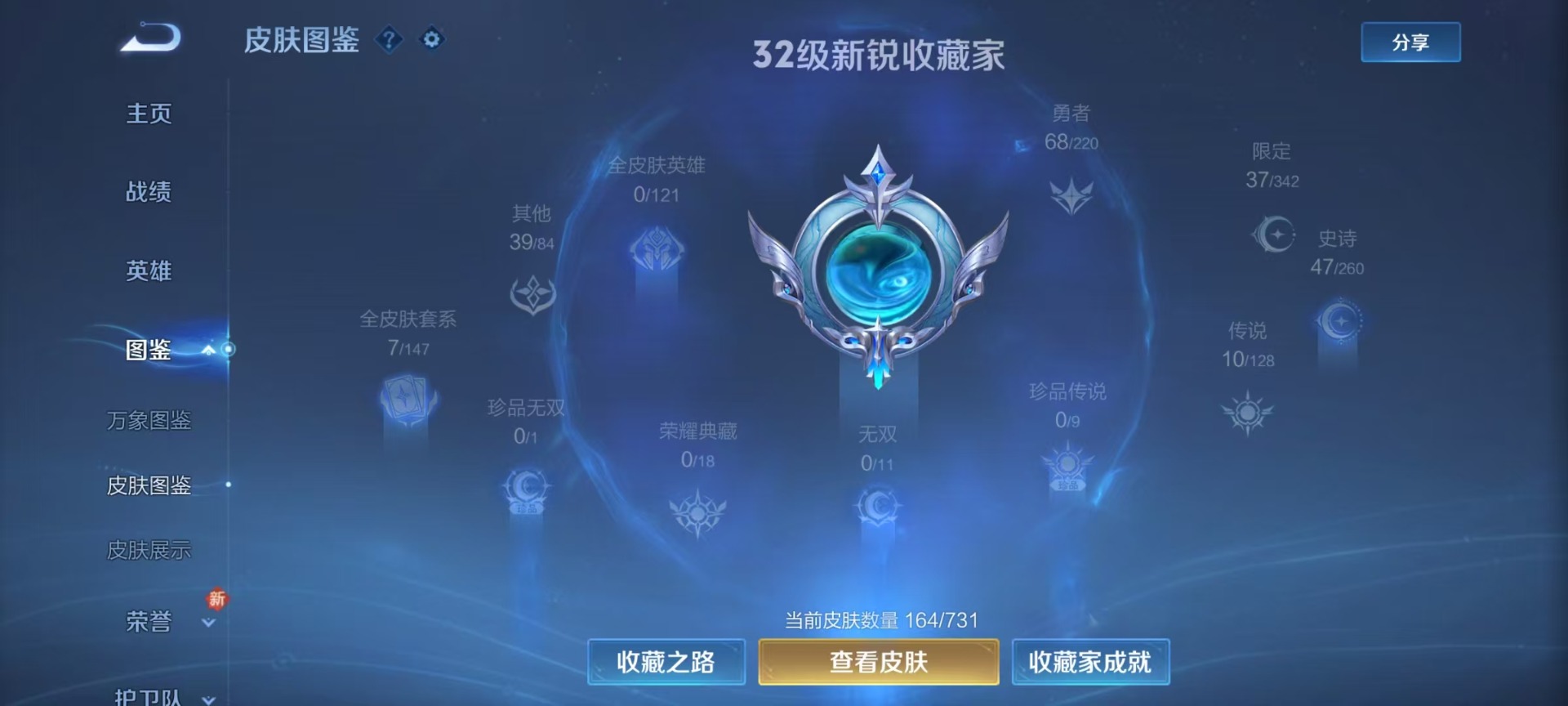 - PX_2009413-贵族等级: V7 英雄数: 121 皮肤数: 195 传说皮: 黄金白羊座,久胜战神,淬星耀世,末日机甲-孙策,乘龙·问璇玑 限定皮: 时雨天司,青春决赛季,孙行者,傲雪梅枪,五谷丰年