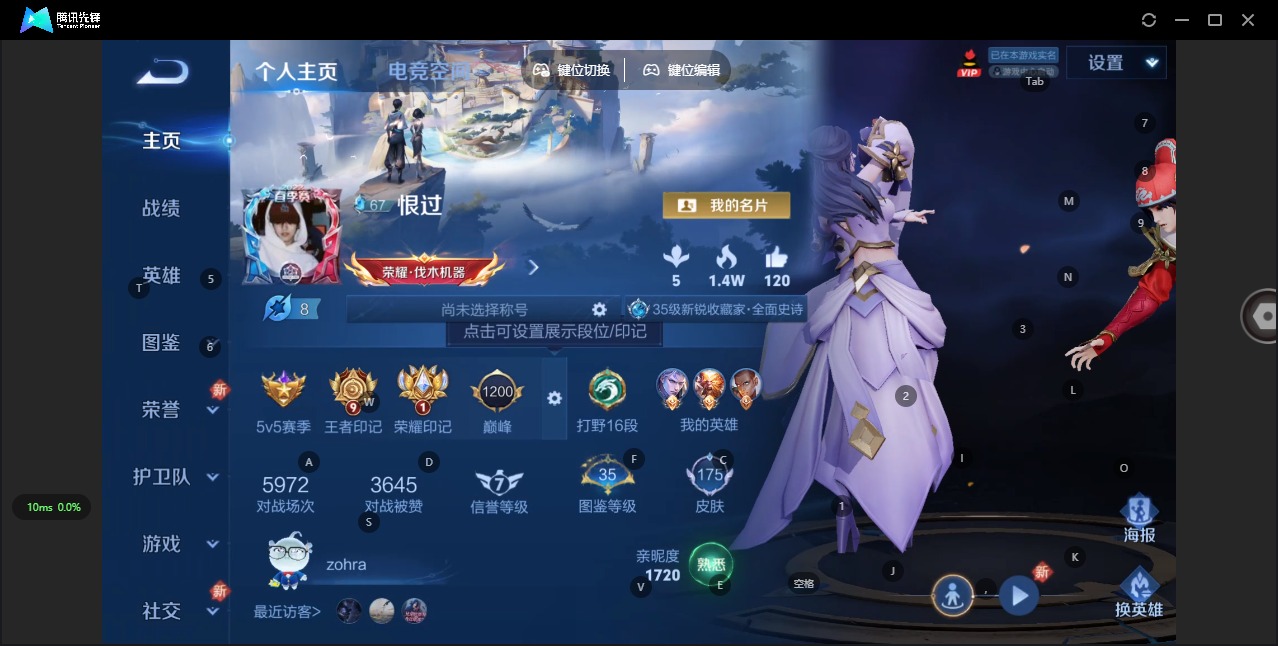 - [36997]英雄数: 12 皮肤数: 2 稀有英雄: 武则天,嬴政,韩信
