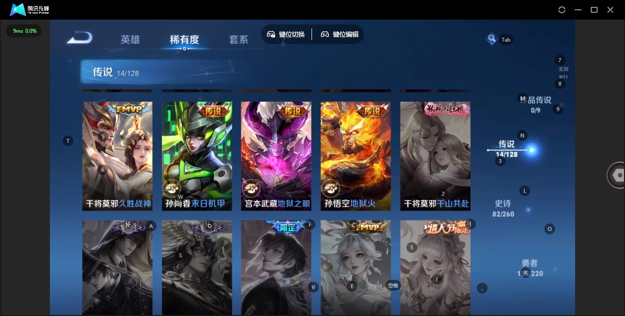 - [11253281]V9 1典藏 2珍品传说 30传说 125英雄 289皮肤 可修改实名 荣耀水晶:弑枪猎影(韩信典藏) 珍品传说:怪盗基德,朽木白哉 传说皮:乘龙·铭钟鼎(赵云年限),貂蝉曦玄引,落雪白狼,祥瑞亨通,游龙清影(小青龙),零号·赤焰,地狱火,地狱之眼,末日机甲-孙尚香(绿蚂蚱),云鹰飞将(小将军),炽阳神光,无双飞将,乞巧织情,绛天战甲(鸡嘴战神),超时空战士-狄仁杰,山海·苍雷引(电光曜子),鹤羽星尊,夜礼服假面,澜逐花归海 珍宝阁皮:妄想食味,玩趣恶龙 限定皮:愿照·九州拓(澜年限),愿照·岁时盈(虞姬年限),逐霄战戟,陌上桑,鸣野蒿,至尊宝,白虎志(电光耗子),凤求凰(白切鸡),傲雪梅枪,前尘镜,影龙天霄,齐天大圣,五谷丰年,青龙志(铠年限),游园惊梦,天狼狩猎者,逐梦之星,天狼溯光者,祈雪灵祝(雪兔子),逐梦之影,逐梦之光,如梦令-后羿,孙行者,引擎之心,时之祈愿-云中君,百木心枪,深海之息(深海大菠萝),山海·玄木吟(马可年限) 史诗皮:星界战将,雪豹·霜爪,百相守梦-百里守约,东方月初,蒙犽顽岩魄,埋骨钱,星界特工,炽弈燎原,化蝶舞,破空之剑,紫霞仙子,苍穹之光,电玩小子(小书包),黄金分割率,特工魅影,千年之狐,真我赫兹(百里守约),鹤归松栖(赵怀真),末日机甲-莱西奥,匿光侦查者,江河有灵,蒙恬荣光圣徽,冰冠公主,青蛇,偶像歌手,晚萤,无限星赏官,魅语,电玩·爆裂旋风,暗夜猫娘,龙骑士(小龙虾),末日机甲-吕布,猫狗日记-孙策,乱世虎臣,节奏热浪,修罗,水果甜心,绅士熊喵,天才门将,星夜王子,心灵骇客,功夫厨神,德古拉伯爵,暗隐猎兽者,幽灵船长,鬼剑武藏,暗渊魔法,地狱岩魂,缤纷独角兽,乘风破浪,逐浪之夏,水晶猎龙者,曙光守护者,金属风暴,原初追逐者,圣诞狂欢,鹰眼统帅,暗夜贵公子,魅力维加斯,黎明之约,赏金猎手,滕王阁序,未来纪元-赵云