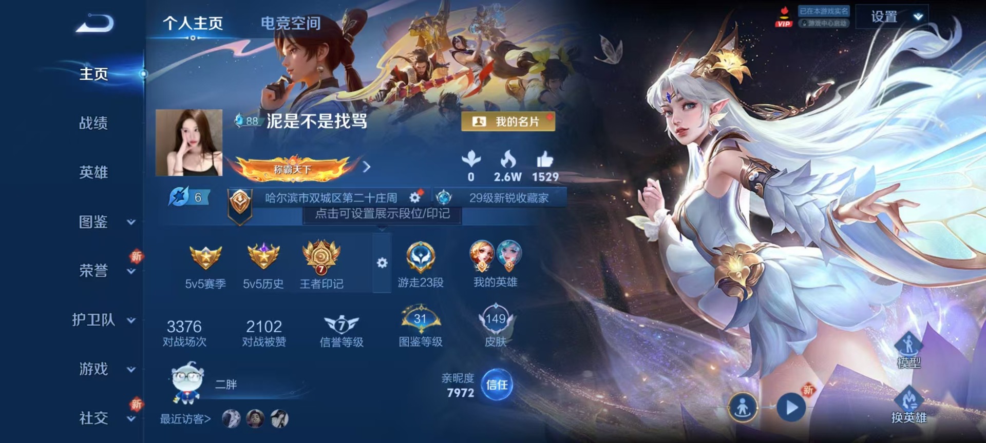 - [12283461]V6 4传说 103英雄 83皮肤 可修改实名 所有社交场景限制 优质装备:鹤归松栖(云缨) 传说皮:幻光神枪 限定皮:愿照·九州拓(澜年限),怒海麟威,龙胆,朱雀志(守约年限) 史诗皮:器灵·浮梦炉,化蝶舞,鹤归松栖(赵怀真),末日机甲-吕布,纤云弄巧,缤纷独角兽,乘风破浪,圣诞狂欢,鹰眼统帅,魅力维加斯,无心,未来纪元-赵云