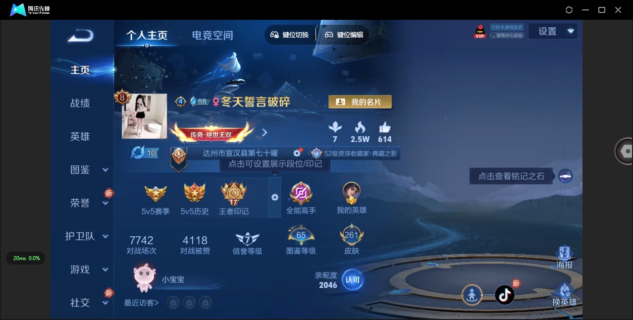[12114683]V8 2典藏 1无双 2珍品传说 18传说 123英雄 261皮肤 可修改实名 女号 优质装备:鸣剑·曳影,拾光映像(瑶典藏),器灵·螭龙剑,酷洛米之心,大耳狗之梦,黄金射手座,云鹰飞将(小将军),久胜战神,炽阳神光,末日机甲-孙尚香(绿蚂蚱),仲夏夜之梦(大飞蛾),李逍遥,淬星耀世,超时空战士-狄仁杰,碎云,神器·狴犴令,山海·炽霜斩(李信年限),山海·苍雷引(电光曜子) 传说皮:续相思 珍宝阁皮:胡桃夹子,万物之道,女武神 限定皮:鸣野蒿,武陵仙君(小桃花),傲雪梅枪,神威(电光马子),遇见飞天,高山流水,五谷丰年,梁祝,李小龙,孙行者,大圣娶亲,天魔缭乱,冰霜恋舞曲,匿光追影者,玉兔公主,山海·玄木吟(马可年限) 史诗皮:灵蛊蚀心,星界战将,石田雨龙,破空之剑,蔬乡物语(鲁班七号),百相守梦-黄忠,紫霞仙子,电玩小子(小书包),黄金分割率,特工魅影,千年之狐,江河有灵,魅语,百解令(蒙犽),高渐离燃音魔法,蒙恬荣光圣徽,冰冠公主,青蛇,偶像歌手,白蛇,暗夜猫娘,猫狗日记-孙策,猫狗日记-大乔,节奏热浪,女仆咖啡,水果甜心,绅士熊喵,天才门将,星夜王子,功夫厨神,德古拉伯爵,暗隐猎兽者,幽灵船长,鬼剑武藏,心灵战警,舞动绿茵,地狱岩魂,诗语江南,纤云弄巧,缤纷独角兽,乘风破浪,逐浪之夏,水晶猎龙者,金属风暴,原初追逐者,圣诞狂欢,圣诞恋歌,鹰眼统帅,魅力维加斯,黎明之约,赏金猎手,天秀·音浪,无心