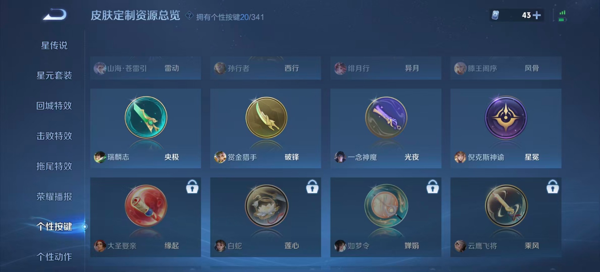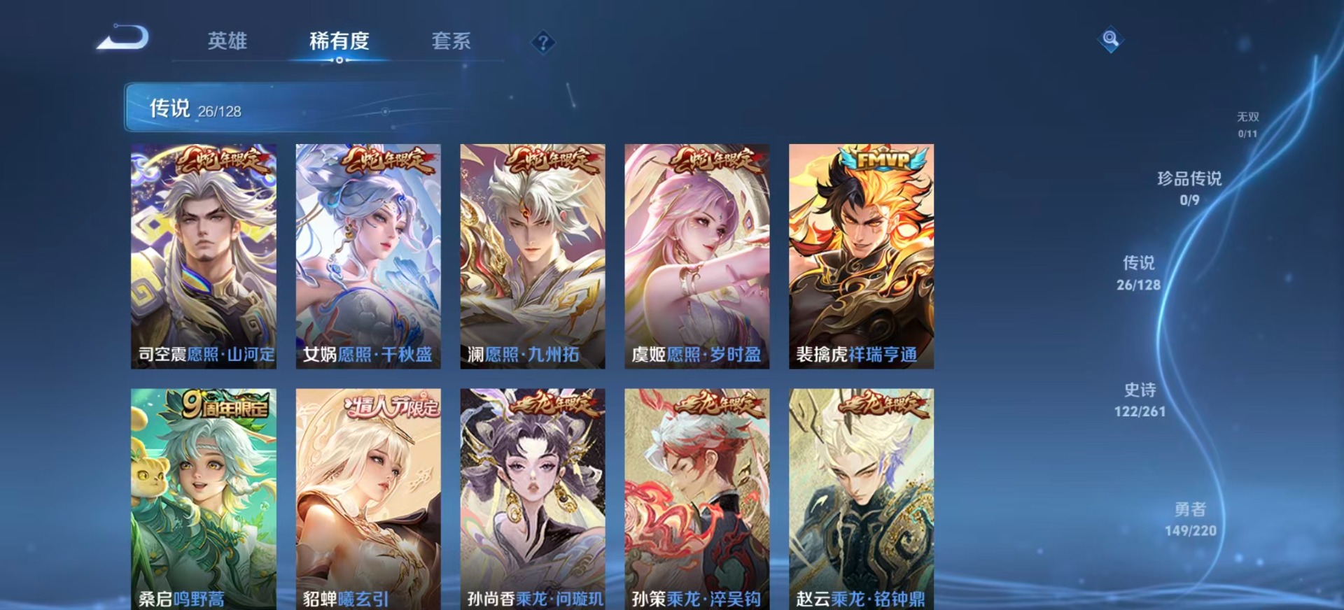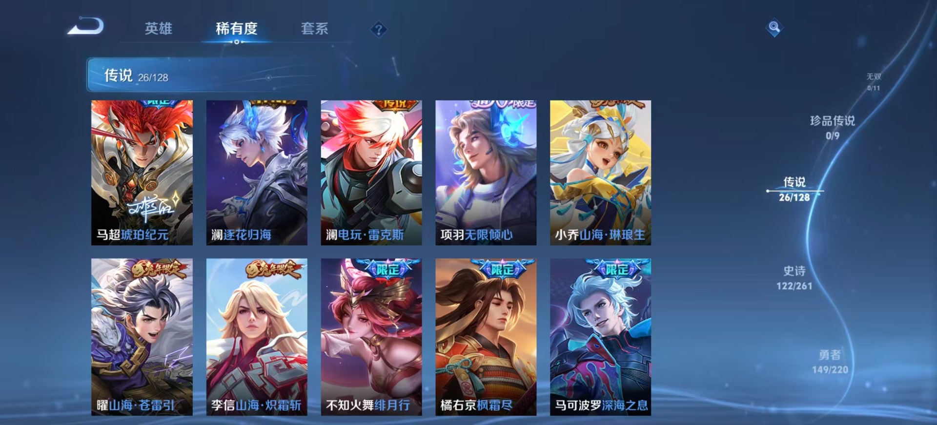 沈梦溪大漠名商,苏烈千军破阵,达摩沙漠行僧,项羽苍威无极,镜青焰无极,兰陵王金庭之子,裴擒虎擒涛扼浪,鲁班大师探海日志,鬼谷子原初探秘者,张良古海寻踪,桑启海盐诗旅,狄仁杰万华元夜,程咬金演武夺筹,李元芳银河之约,李元芳云中旅人,钟馗神迹守卫,钟馗驱傩正仪