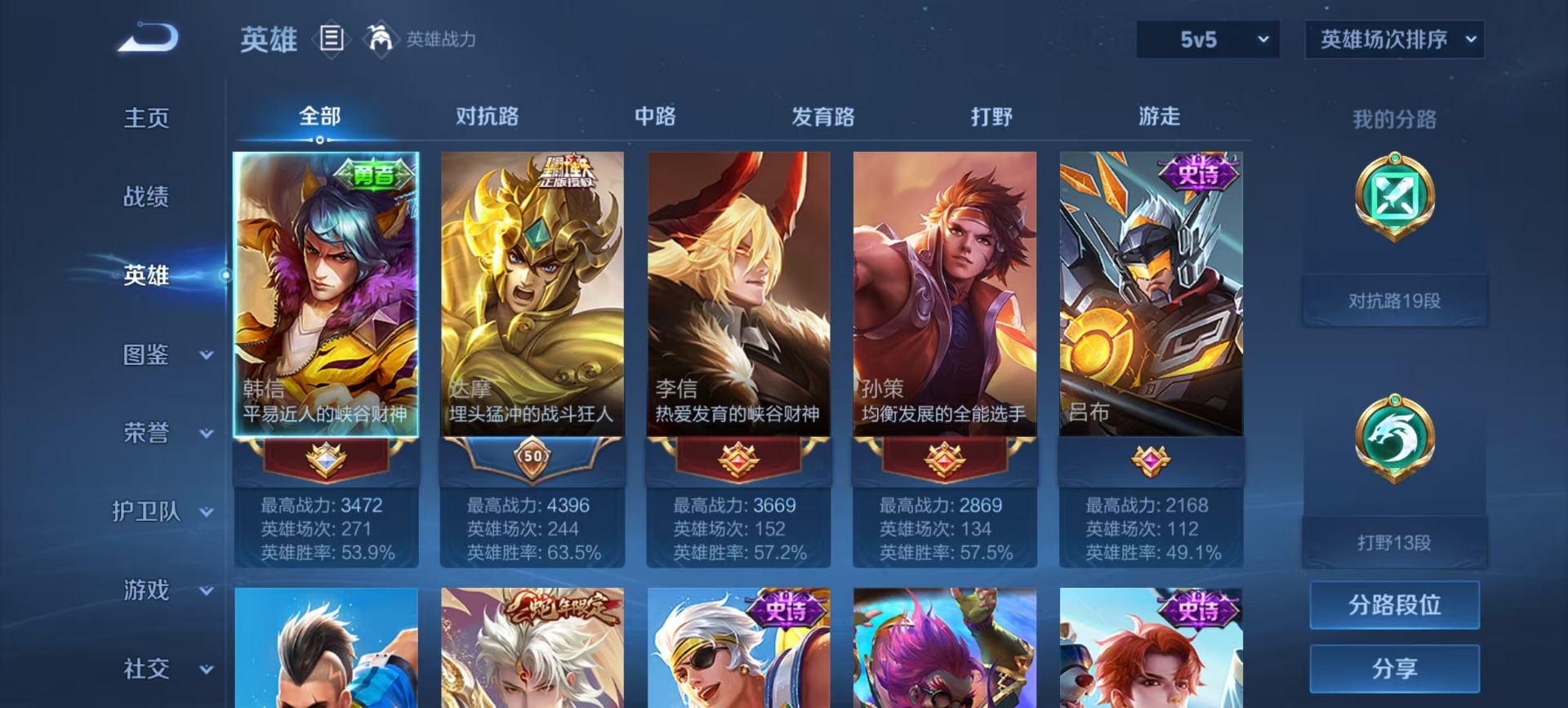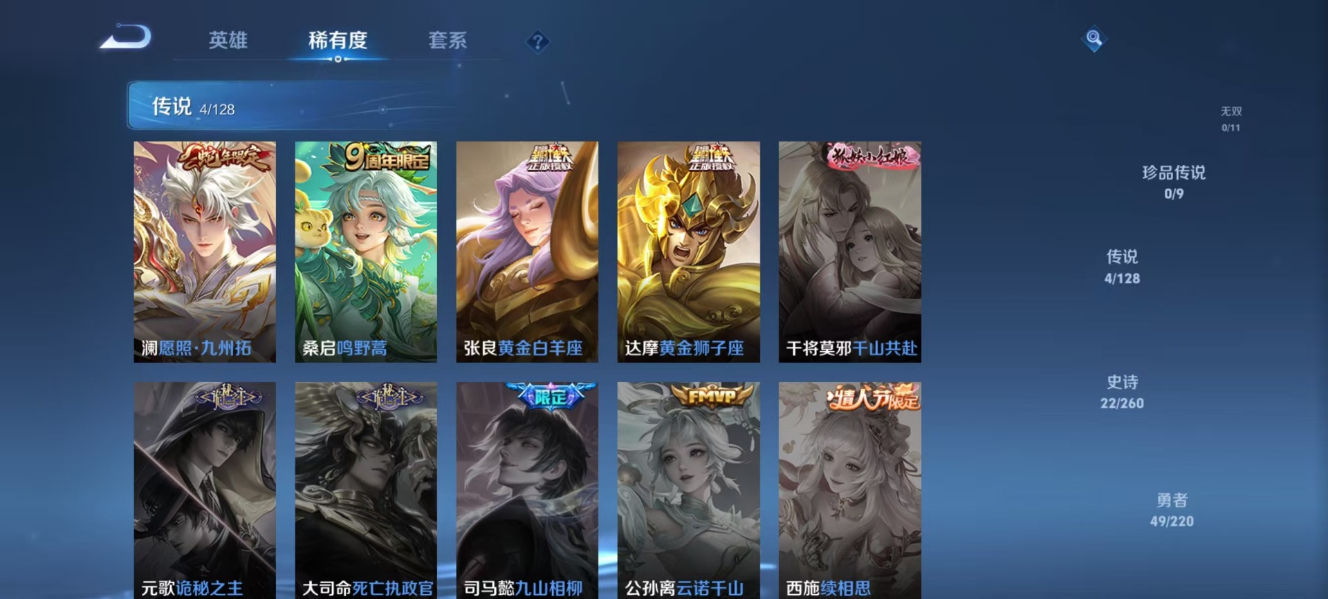 - [11496791]司空震蛇年限,霜月吟,-可二次-122英雄-149皮肤-5传说-48史诗 女武神-艾琳 街头霸王-韩信