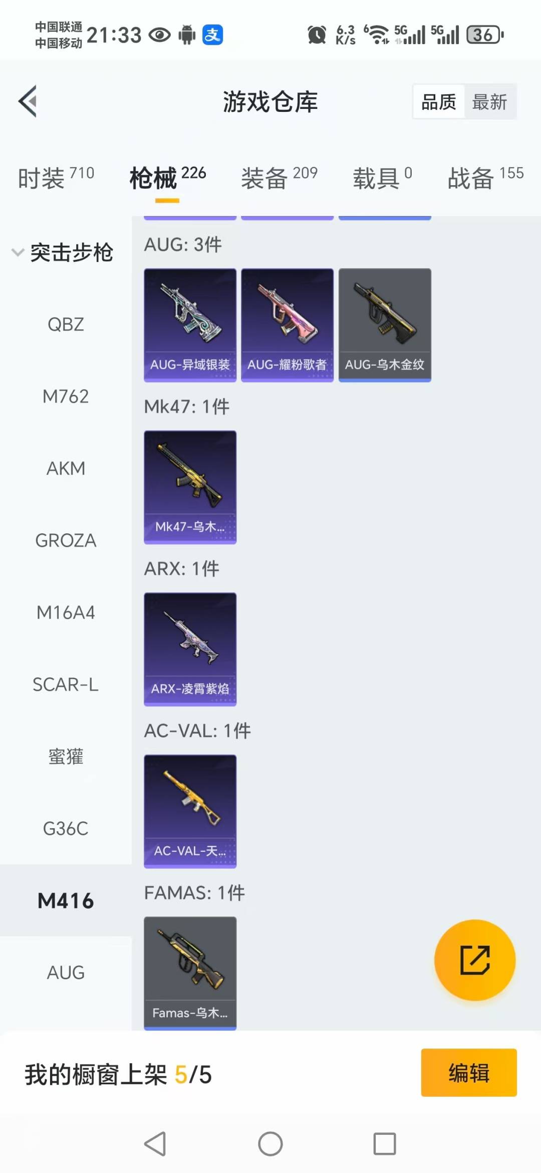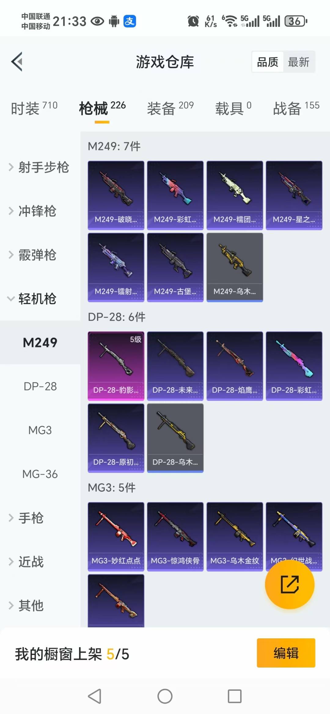 M762-瑞龙福将,M762-奇异狩猎者,AKM-奇异狩猎者,AKM-缤纷海域,M24-奇异狩猎者,S686-奇异狩猎者,M249-古堡领主