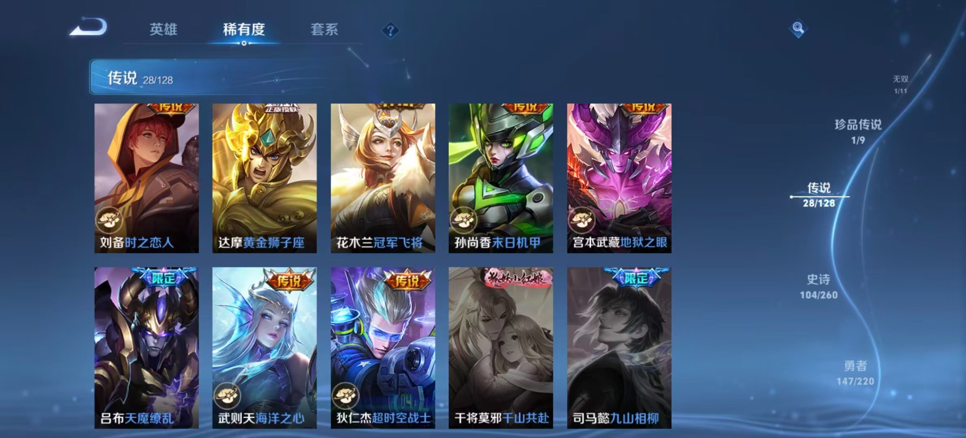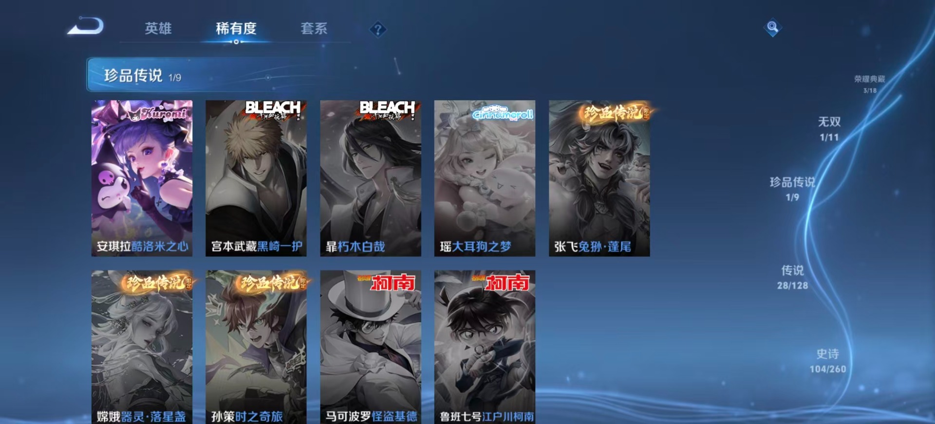 - [11676055]V8 1典藏 1无双 3珍品传说 19传说 125英雄 253皮肤 可修改实名 优质装备:无限飓风号(高达),天机白泽,怪盗基德,朽木白哉,黑崎一护,黄金狮子座,云鹰飞将(小将军),炽阳神光,胖达荣荣,超时空战士-狄仁杰,妄想实况,澜逐花归海,诡秘之主,涂山容容 传说皮:乘龙·铭钟鼎(赵云年限),典韦战鼓燎原,九山相柳 珍宝阁皮:玩趣恶龙 限定皮:愿照·九州拓(澜年限),愿照·山河定(司空震年限),鸣野蒿,凤求凰(白切鸡),飞衡(韩信年限),影龙天霄,诗剑行,五谷丰年,梁祝,御风骁将(吕布年限),李小龙,永曜之星,辉光之辰,如梦令-后羿,孙行者,美猴王,山海·玄木吟(马可年限) 史诗皮:鸭鸭历险记-刘禅,器灵·浮梦炉,灵蛊蚀心,星界战将,龙之律动,石田雨龙,百相守梦-周瑜,茶境仙,埋骨钱,百相守梦-百里守约,紫霞仙子,苍穹之光,电玩小子(小书包),黄金分割率,特工魅影,千年之狐,江河有灵,高渐离燃音魔法,蒙恬荣光圣徽,偶像歌手,暗夜猫娘,猫狗日记-孙策,乱世虎臣,摇滚巨星,水果甜心,绅士熊喵,星夜王子,德古拉伯爵,鬼剑武藏,暗渊魔法,天秀·启明,纤云弄巧,缤纷独角兽,乘风破浪,逐浪之夏,水晶猎龙者,曙光守护者,金属风暴,原初追逐者,圣诞狂欢,圣诞恋歌,鹰眼统帅,暗夜贵公子,魅力维加斯,黎明之约,未来纪元-赵云