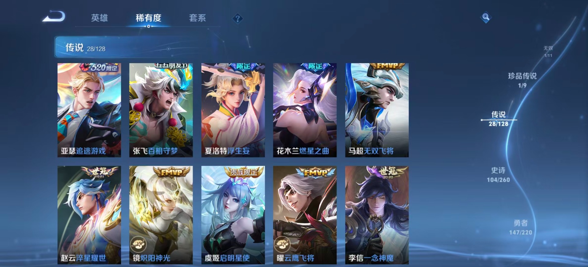 铠青龙志,赵云龙胆,司空震愿照·山河定,裴擒虎李小龙,上官婉儿梁祝,上官婉儿天狼绘梦者,马可波罗山海·玄木吟,桑启鸣野蒿,芈月白晶晶,孙悟空至尊宝,孙悟空美猴王,瑶山海·碧波行