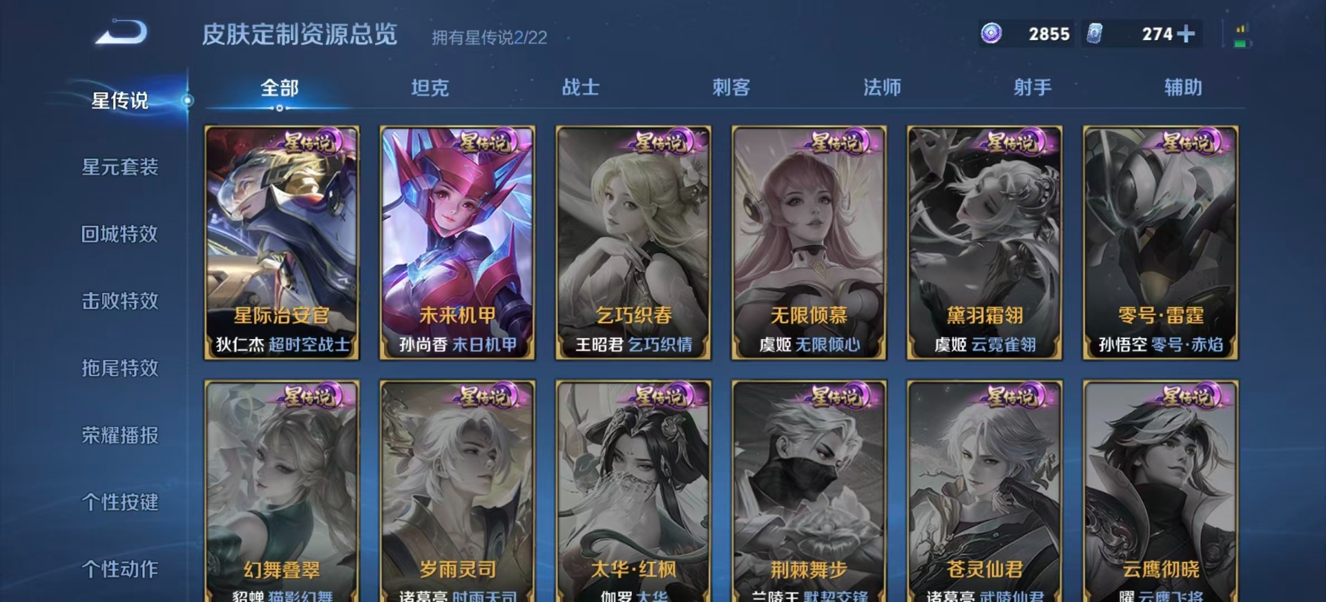 大乔白蛇,大乔猫狗日记,刘邦德古拉伯爵,夏侯惇乘风破浪,阿轲暗夜猫娘,阿轲节奏热浪,铠曙光守护者,曹操幽灵船长,伽罗箭羽风息,廉颇地狱岩魂,伽罗琥珀纪元,小乔缤纷独角兽,孙尚香时之恋人,孙策猫狗日记,不知火舞魅语,赵怀真器灵·浮梦炉,鲁班七号电玩小子,项羽苍穹之光,吕布圣诞狂欢,吕布末日机甲,露娜紫霞仙子,周瑜雪夜绮愿,刘禅电玩·爆裂旋风,刘禅天才门将,刘禅绅士熊喵,宫本武藏鬼剑武藏,公孙离无限星赏官,兰陵王暗隐猎兽者,貂蝉圣诞恋歌,花木兰水晶猎龙者,李白千年之狐,夏洛特永昼,安琪拉心灵骇客,蒙犽百解令,西施诗语江南,白起星夜王子,亚瑟心灵战警,嬴政摇滚巨星,嬴政暗夜贵公子,程咬金功夫厨神,百里玄策热力回旋,雅典娜冰冠公主,雅典娜黎明之约,百里守约特工魅影,李元芳逐浪之夏,墨子龙骑士,墨子金属风暴,蔡文姬舞动绿茵,王昭君偶像歌手,嫦娥拒霜思,钟馗乐园奇幻夜,橘右京修罗