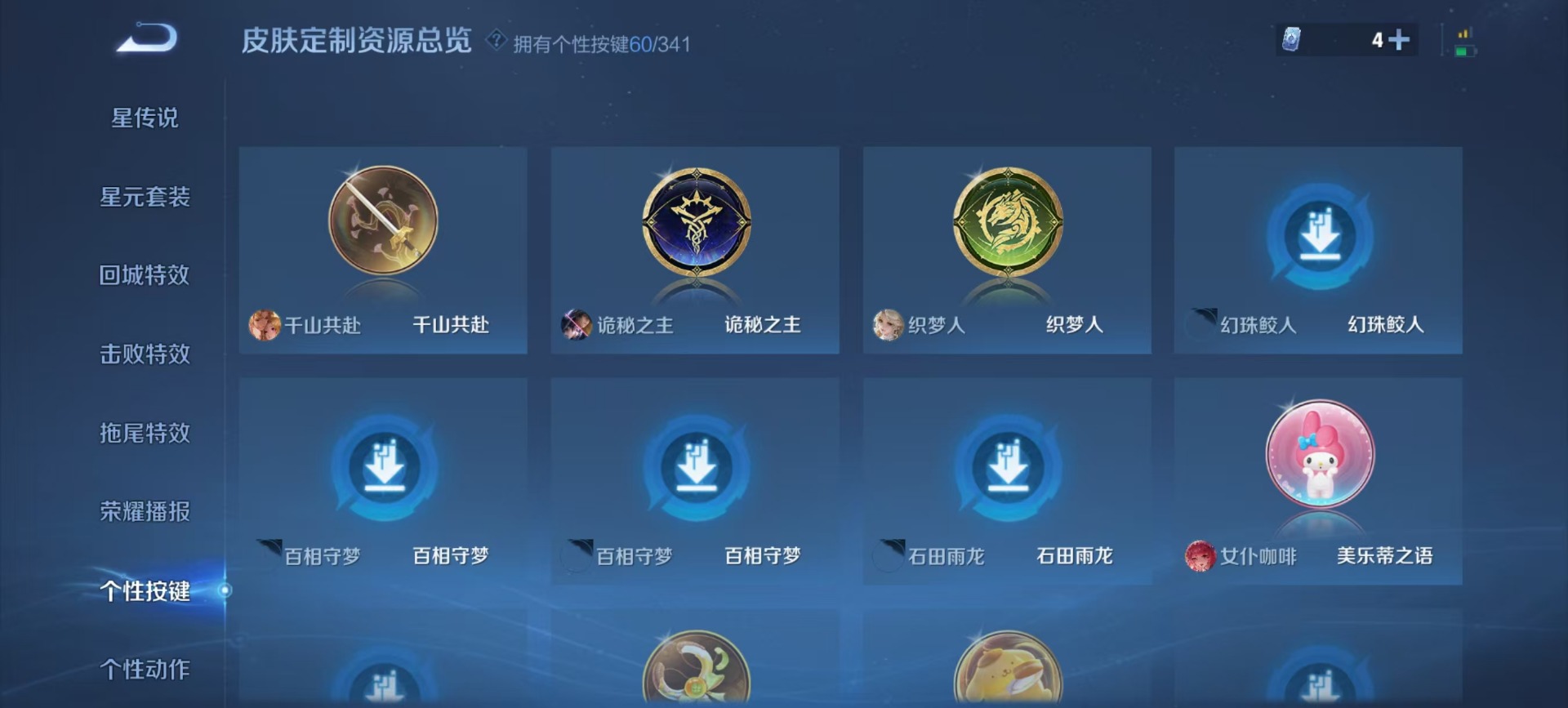 甄姬女儿国国王,甄姬至美·化雀舞,伽罗天狼溯光者,伽罗太华,赵云龙胆,孙膑天狼运算者,孙膑寅虎·展翼,干将莫邪冰霜恋舞曲,孙尚香异界灵契,牛魔奔雷神使,鲁班七号乒乒小将,鲁班七号寅虎·瑞焰,后羿辉光之辰,露娜一生所爱,诸葛亮时雨天司,公孙离玉兔公主,貂蝉逐梦之音,裴擒虎李小龙,上官婉儿梁祝,上官婉儿天狼绘梦者,李白诗剑行,花木兰瑞麟志,花木兰青春决赛季,马可波罗山海·玄木吟,西施至美·乘鲤谣,桑启鸣野蒿,女娲补天,女娲愿照·千秋盛,孙悟空孙行者,孙悟空大圣娶亲,孙悟空至尊宝,百里玄策白虎志,赵云引擎之心,妲己时之彼端,妲己时之奇旅,妲己愿照·众生和,韩信飞衡,韩信逐梦之影,百里守约朱雀志,虞姬霸王别姬,娜可露露前尘镜,妲己热情桑巴,嫦娥如梦令,王昭君星穹之声,关羽冰锋战神