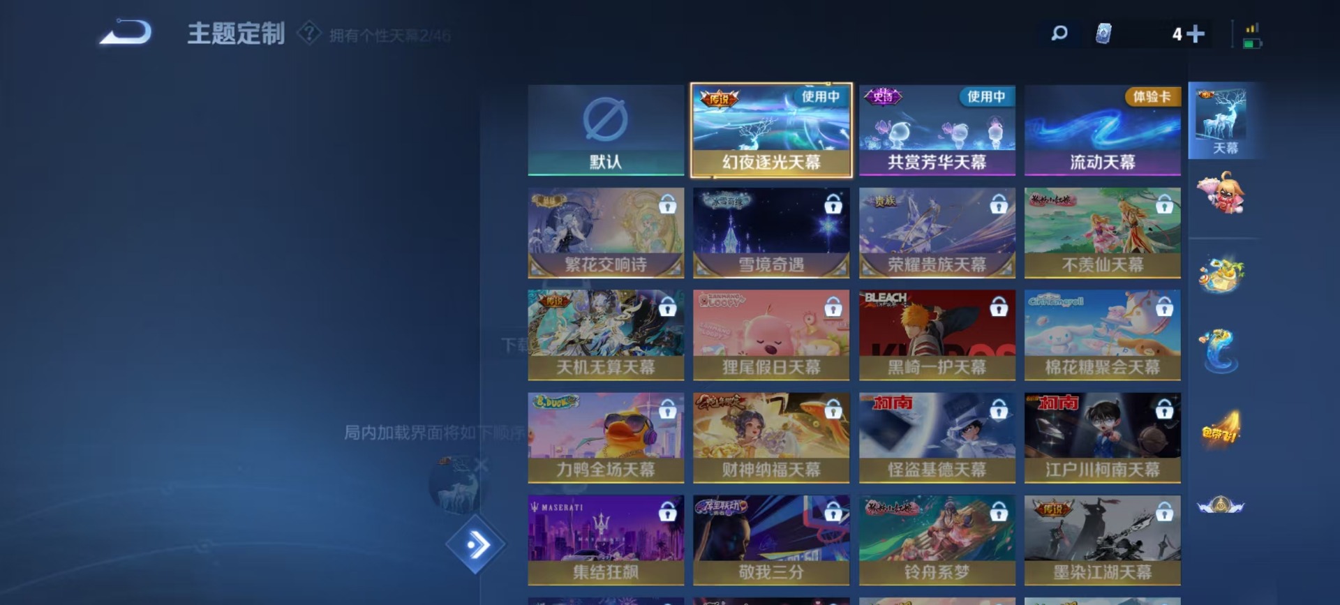 大乔白蛇,大乔猫狗日记,刘邦德古拉伯爵,夏侯惇乘风破浪,阿轲暗夜猫娘,阿轲节奏热浪,沈梦溪匿光破解者,铠曙光守护者,刘备百相守梦,曹操幽灵船长,廉颇地狱岩魂,伽罗箭羽风息,小乔缤纷独角兽,小乔青蛇,孙尚香时之恋人,孙策猫狗日记,不知火舞魅语,赵怀真器灵·浮梦炉,鲁班七号电玩小子,项羽苍穹之光,吕布圣诞狂欢,吕布末日机甲,露娜紫霞仙子,诸葛亮黄金分割率,刘禅电玩·爆裂旋风,司马懿暗渊魔法,刘禅天才门将,刘禅绅士熊喵,宫本武藏鬼剑武藏,公孙离无限星赏官,兰陵王暗隐猎兽者,貂蝉圣诞恋歌,貂蝉唤灵魅影,花木兰水晶猎龙者,李白千年之狐,蒙犽龙鼓争鸣,安琪拉心灵骇客,蒙犽百解令,安琪拉时之奇旅,艾琳奇遇舞章,杨戬天秀·启明,白起星夜王子,西施诗语江南,亚瑟心灵战警,狄仁杰绮世丹青,张良千筹问战,嬴政摇滚巨星,嬴政暗夜贵公子,程咬金功夫厨神,雅典娜冰冠公主,百里守约真我赫兹,李元芳逐浪之夏,百里守约特工魅影,墨子龙骑士,墨子金属风暴,蔡文姬舞动绿茵,瑶遇见神鹿,蔡文姬电玩·兔顽号,王昭君偶像歌手,嫦娥拒霜思,钟馗乐园奇幻夜,橘右京修罗
