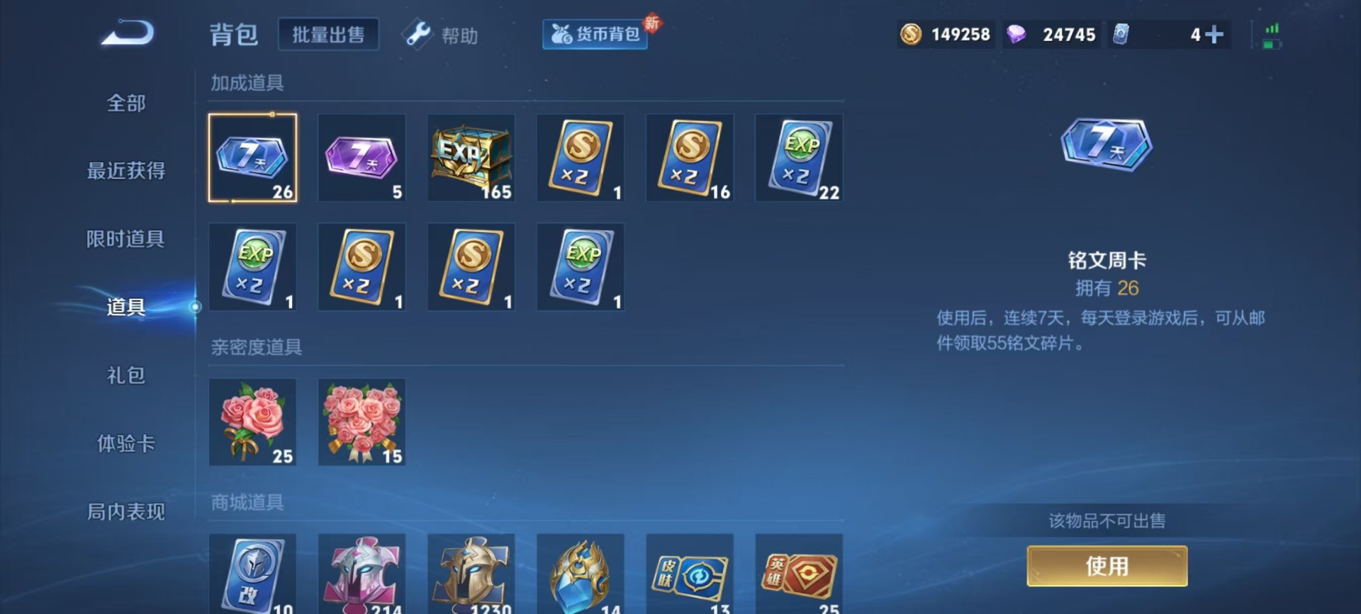 - [12176763]3橙皮 1紫皮 7皮肤 13英雄 30卡面 190已用源晶 铂金 优质装备:狂徒-紫阙金琅,夜刃诡镰,幻影-末日泡泡,正义-末日泡泡