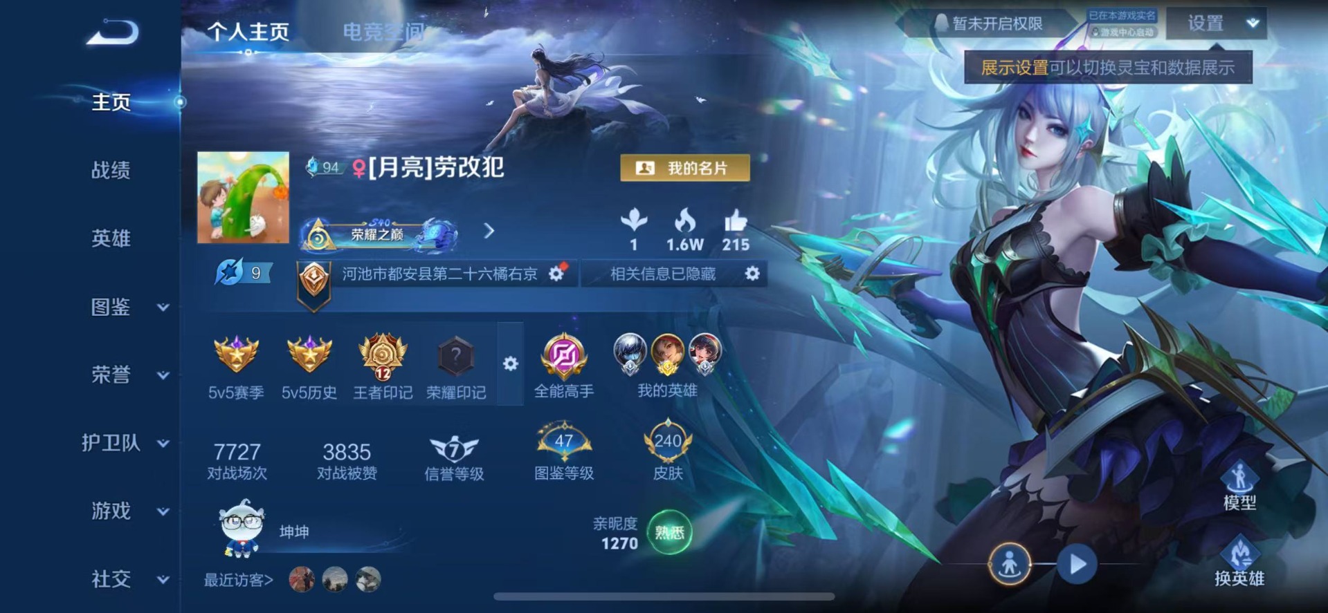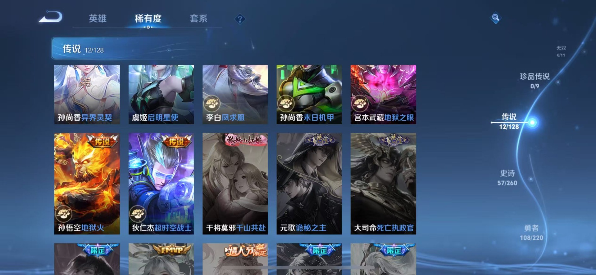 - PX_2100266-实名: 可修改 贵族等级: V5 英雄数: 93 皮肤数: 94 限定皮: 逐霄战戟,愿照·岁时盈