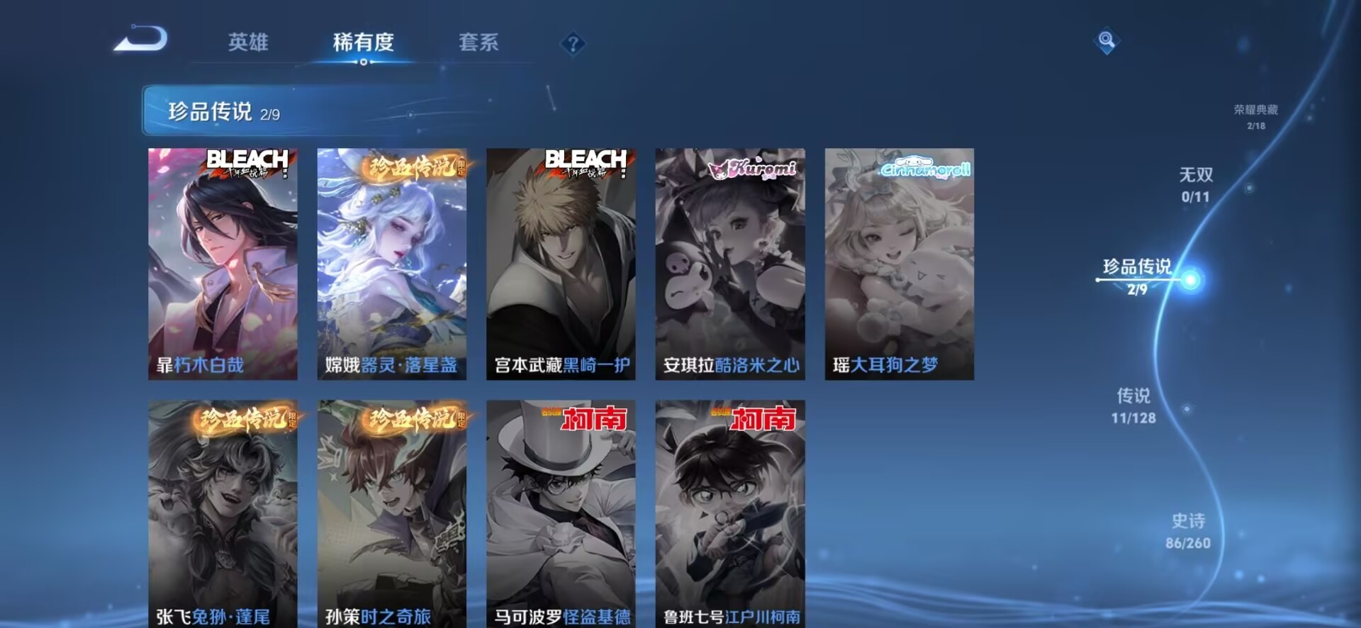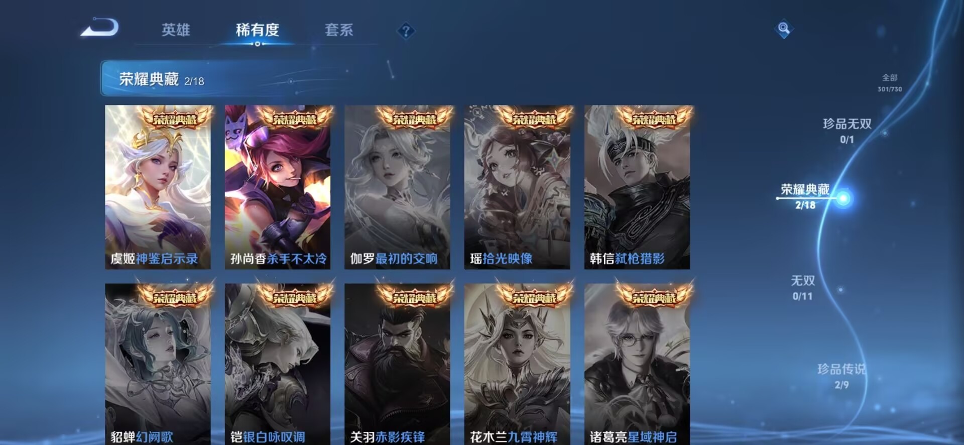 - [11253618]V8 2典藏 8传说 124英雄 249皮肤 可修改实名 荣耀水晶:鸣剑·曳影,全息碎影(猴子典藏) 传说皮:地狱火,末日机甲-孙尚香(绿蚂蚱),超时空战士-狄仁杰,妄想实况,夜礼服假面 珍宝阁皮:蔷薇恋人 限定皮:至尊宝,凤求凰(白切鸡),飞衡(韩信年限),遇见飞天,高山流水,诗剑行,五谷丰年,冰锋战神,游园惊梦,梁祝,李小龙,朱雀志(守约年限),如梦令-后羿,一生所爱,大圣娶亲,美猴王,山海·玄木吟(马可年限) 史诗皮:白龙吟,黄金分割率,千年之狐,江河有灵,百解令(蒙犽),偶像歌手,暗夜猫娘,末日机甲-吕布,猫狗日记-孙策,乱世虎臣,修罗,女仆咖啡,水果甜心,星夜王子,心灵骇客,功夫厨神,暗隐猎兽者,鬼剑武藏,心灵战警,舞动绿茵,地狱岩魂,繁星吟游(呼啦呼啦),拒霜思,缤纷独角兽,乘风破浪,水晶猎龙者,曙光守护者,热力回旋,金属风暴,原初追逐者,圣诞狂欢,圣诞恋歌,鹰眼统帅,魅力维加斯,无心,未来纪元-赵云
