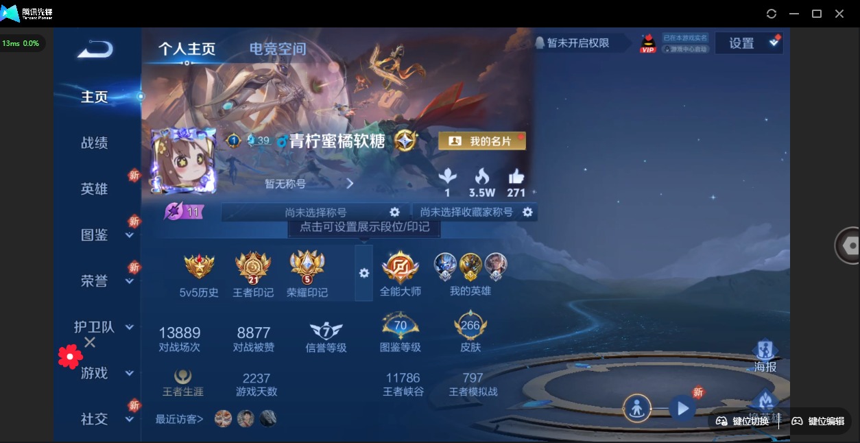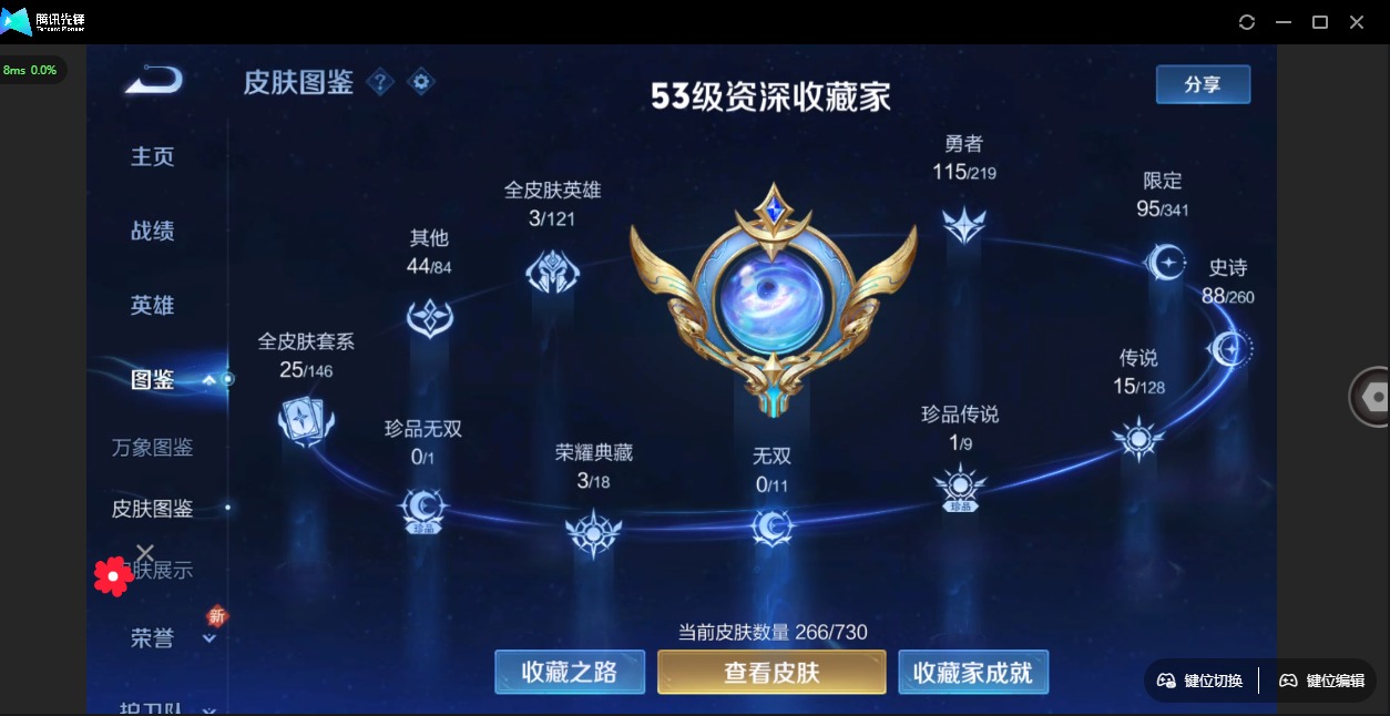 [12116140]V8 3典藏 1珍品传说 15传说 125英雄 266皮肤 可修改实名 优质装备:鸣剑·曳影,星域神启(倪克斯贼亮),赤影疾锋,怪盗基德,猫影幻舞,炽阳神光,一念神魔,末日机甲-孙尚香(绿蚂蚱),仲夏夜之梦(大飞蛾),地狱之眼,李逍遥,时之恋人-刘备(电焊工),游龙清影(小青龙),无双飞将 传说皮:幻光神枪 珍宝阁皮:妄想食味,优雅恋人,女武神 限定皮:愿照·千秋盛(女娲年限),鸣野蒿,至尊宝,时之彼端,神威(电光马子),遇见飞天,高山流水,五谷丰年,梁祝,御风骁将(吕布年限),逐梦之星,默契交锋-花木兰,真爱至上,冰霜恋舞曲,时之祈愿-瑶(瑶传限) 史诗皮:器灵·浮梦炉,化蝶舞,星界战将,蔬乡物语(鲁班七号),百相守梦-百里守约,苍穹之光,电玩小子(小书包),白龙吟,特工魅影,千年之狐,永昼,魅语,百解令(蒙犽),高渐离燃音魔法,蒙恬荣光圣徽,无限星赏官,冰冠公主,偶像歌手,晚萤,电玩·爆裂旋风,暗夜猫娘,龙骑士(小龙虾),猫狗日记-孙策,猫狗日记-大乔,乱世虎臣,节奏热浪,修罗,摇滚巨星,水果甜心,天才门将,星夜王子,心灵骇客,功夫厨神,德古拉伯爵,暗隐猎兽者,幽灵船长,鬼剑武藏,心灵战警,乐园奇幻夜,天秀·启明,舞动绿茵,地狱岩魂,缤纷独角兽,乘风破浪,逐浪之夏,月团寄思,水晶猎龙者,箭羽风息,原初追逐者,圣诞狂欢,圣诞恋歌,鹰眼统帅,暗夜贵公子,魅力维加斯,黎明之约,赏金猎手,无心