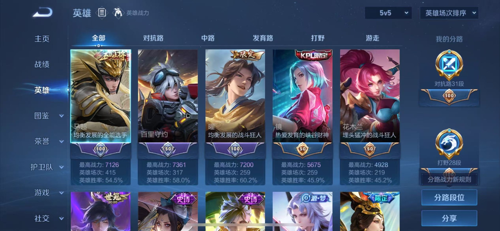 - [12143037]V7 1典藏 5传说 125英雄 200皮肤 可修改实名 优质装备:星空梦想(太空人),云霓雀翎 传说皮:云诺千山 珍宝阁皮:优雅恋人,蔷薇恋人 限定皮:愿照·九州拓(澜年限),愿照·众生和(妲己年限),鸣野蒿,五谷丰年,李小龙 史诗皮:鸭鸭历险记-刘禅,化蝶舞,龙之律动,雪豹·霜爪,藏狐·褐绒,茶境仙,破空之剑,决胜骁骑,蔬乡物语(鲁班七号),织梦人,特工魅影,江河有灵,百解令(蒙犽),高渐离燃音魔法,末日机甲-吕布,乱世虎臣,女仆咖啡,水果甜心,星夜王子,心灵骇客,暗隐猎兽者,幽灵船长,鬼剑武藏,心灵战警,地狱岩魂,纤云弄巧,拒霜思,乘风破浪,逐浪之夏,曙光守护者,金属风暴,圣诞狂欢,圣诞恋歌,鹰眼统帅,魅力维加斯,无心,未来纪元-赵云