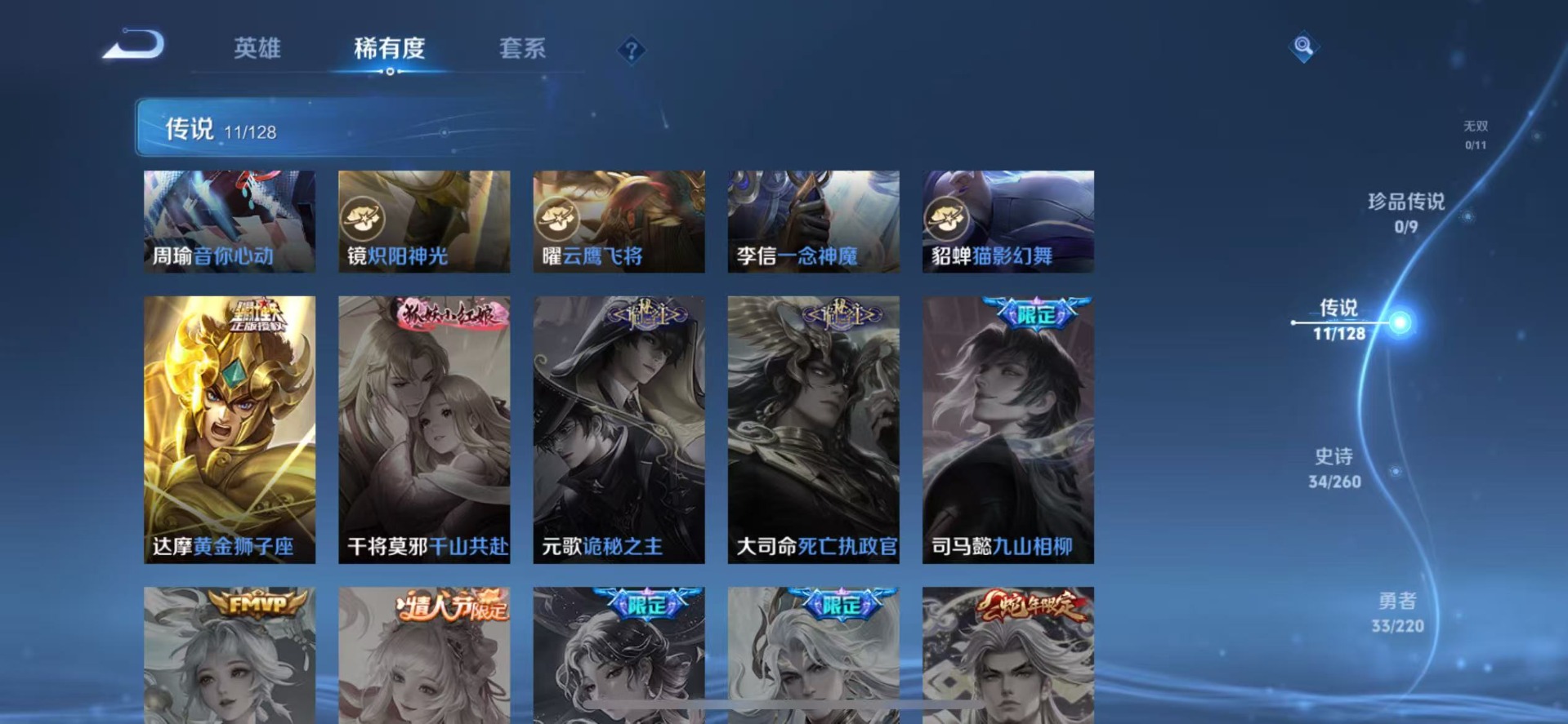 - PX_2090026-贵族8/皮肤337/典藏2/传说19/史诗96/英雄125/全息碎影/鸣剑曳影/碎月剑心/蔷薇恋人/优雅恋人/玩趣恶龙/特工战影/地狱之眼/仲夏夜之梦/黄金狮子座/久胜战神/一念神魔/启明星使/炽阳神光/绛天战甲/时雨天司/祈雪灵祝/李逍遥/淬星耀世/寅虎赤拳/无双飞将/马超琥珀纪元/乘龙淬吴钩/乘龙问璇玑/桑启鸣野蒿/云缨幻光神枪/狰/姜子牙天穹之誓/狄仁杰阴阳师/凯尔特女