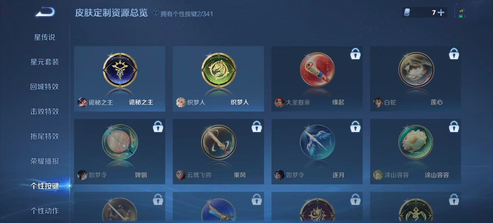 夏侯惇朔风刀,老夫子醍醐杖,沈梦溪大漠名商,盾山御銮,苏烈千军破阵,达摩沙漠行僧,牛魔御旌,项羽苍威无极,镜青焰无极,元歌云间偶戏,兰陵王金庭之子,裴擒虎擒涛扼浪,鲁班大师探海日志,明世隐疑决卦,蒙犽狂想玩偶喵,马可波罗暗影游猎,鬼谷子原初探秘者,张良古海寻踪,桑启海盐诗旅,狄仁杰万华元夜,程咬金演武夺筹,李元芳云中旅人,弈星混沌棋,钟馗神迹守卫,钟馗驱傩正仪
