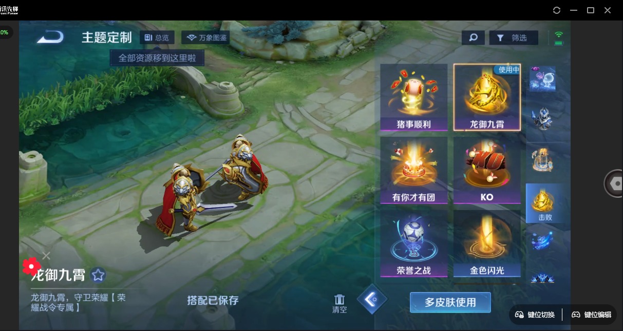 金蝉唐三藏,夏侯惇匿光决锋者,老夫子圣诞老人,甄姬女儿国国王,铠青龙志,苏烈玄武志,露娜启示之音,后羿辉光之辰,露娜一生所爱,镜匿光追影者,公孙离玉兔公主,裴擒虎梅西,裴擒虎李小龙,裴擒虎天狼狩猎者,上官婉儿梁祝,花木兰瑞麟志,安琪拉魔法小厨娘,马可波罗逐梦之星,桑启鸣野蒿,猪八戒猪悟能,女娲补天,孙悟空孙行者,孙悟空大圣娶亲,孙悟空至尊宝,孙悟空美猴王,百里玄策白虎志,马超神威,雅典娜神奇女侠,韩信傲雪梅枪,韩信飞衡,百里守约朱雀志,澜愿照·九州拓,关羽武圣,关羽冰锋战神