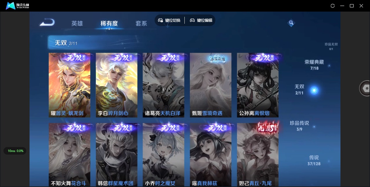 [12116656]V10 7典藏 2无双 3珍品传说 37传说 126英雄 389皮肤 典藏英雄武则天 可修改实名 优质装备:倪克斯神谕(宇宙婆娘),九霄神辉(木兰典藏),赤影疾锋,银白咏叹调(倪克斯侍卫),弑枪猎影(韩信典藏),碎月剑心(李白无双),神鉴启示录,器灵·螭龙剑,最初的交响(伽罗典藏),器灵·落星盏,黄金狮子座,黄金白羊座,猫影幻舞,久胜战神,炽阳神光,一念神魔,云霓雀翎,末日机甲-孙尚香(绿蚂蚱),地狱之眼,乞巧织情,时之恋人-刘备(电焊工),超时空战士-狄仁杰,无双飞将,山海·炽霜斩(李信年限),浮生妄,艾琳觅芳踪,玄雷天君,千劫归真,涂山容容 珍品传说:时之奇旅-孙策,兔狲·蓬尾 传说皮:续相思,星之鸣奏,祥瑞亨通,幻光神枪 珍宝阁皮:妄想食味,优雅恋人 限定皮:愿照·九州拓(澜年限),愿照·福禄聚(蔡文姬年限),愿照·岁时盈(虞姬年限),愿照·山河定(司空震年限),愿照·众生和(妲己年限),愿照·千秋盛(女娲年限),逐霄战戟,鸣野蒿,武陵仙君(小桃花),傲雪梅枪,绯月行,时雨天司(水龙头),神威(电光马子),影龙天霄,遇见飞天,高山流水,匿光决锋者,怒海麟威,五谷丰年,冰锋战神,龙胆,逐梦之翼,逐梦之星,烈魂,祈雪灵祝(雪兔子),李小龙,朱雀志(守约年限),孙行者,一生所爱,引擎之心,匿光追影者,深海之息(深海大菠萝),山海·玄木吟(马可年限) 史诗皮:鸭鸭历险记-刘禅,苍鳞隐世,器灵·浮梦炉,糖绘人间,狼魂孤将,绮世丹青,瑰影绮梦,化蝶舞,龙之律动,雪豹·霜爪,石田雨龙,百相守梦-周瑜,茶境仙,埋骨钱,破空之剑,战舞者,东方月初,决胜骁骑,蔬乡物语(鲁班七号),曹操夜都魔契,百相守梦-百里守约,遇见神鹿,紫霞仙子,苍穹之光,电玩小子(小书包),黄金分割率,特工魅影,千年之狐,永昼,冰冠公主,匿光侦查者,江河有灵,青蛇,百解令(蒙犽),高渐离燃音魔法,魅语,无限星赏官,晚萤,偶像歌手,匿光破解者,百相守梦(关羽),龙骑士(小龙虾),暗夜猫娘,末日机甲-吕布,猫狗日记-孙策,猫狗日记-大乔,乱世虎臣,节奏热浪,修罗,女仆咖啡,摇滚巨星,水果甜心,绅士熊喵,天才门将,星夜王子,心灵骇客,功夫厨神,德古拉伯爵,暗隐猎兽者,幽灵船长,鬼剑武藏,暗渊魔法,心灵战警,乐园奇幻夜,天秀·启明,舞动绿茵,地狱岩魂,纤云弄巧,拒霜思,缤纷独角兽,乘风破浪,逐浪之夏,龙鼓争鸣,