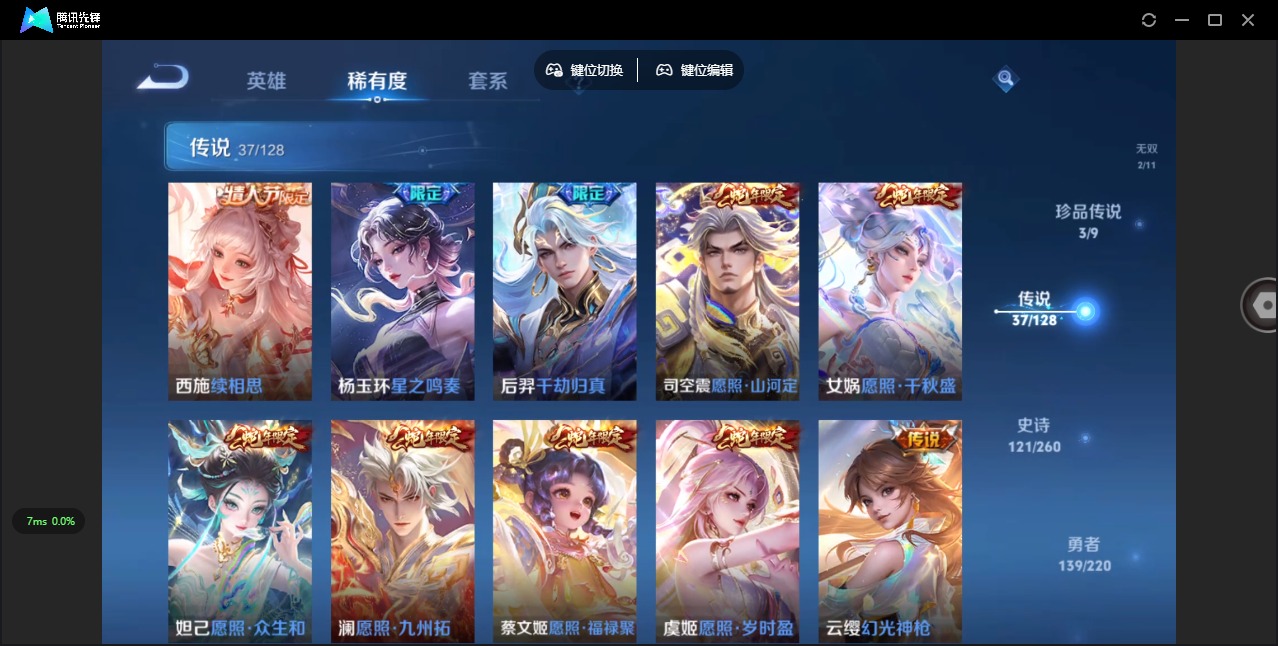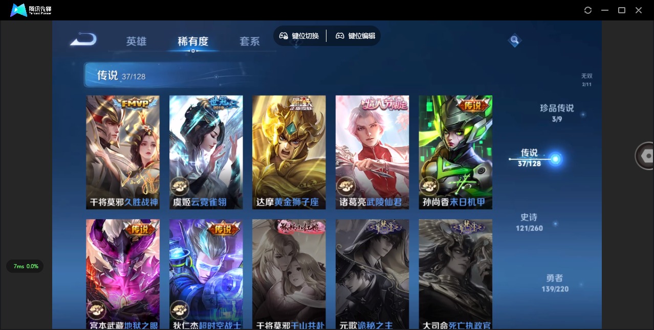 - [11527946]V8 1典藏 7传说 124英雄 205皮肤 可修改实名 优质装备:星域神启(倪克斯贼亮),零号·赤焰,澜逐花归海 传说皮:乘龙·淬吴钩(孙策年限),铠冥王哈迪斯 珍宝阁皮:玩趣恶龙 限定皮:鸣野蒿,傲雪梅枪,寅虎·展翼(孙膑年限),神威(电光马子),飞衡(韩信年限),五谷丰年,梁祝,御风骁将(吕布年限),李小龙,猪悟能,深海之息(深海大菠萝),匿光启智者 史诗皮:石田雨龙,埋骨钱,蔬乡物语(鲁班七号),特工魅影,千年之狐,匿光侦查者,百解令(蒙犽),高渐离燃音魔法,冰冠公主,偶像歌手,暗夜猫娘,龙骑士(小龙虾),末日机甲-吕布,节奏热浪,修罗,摇滚巨星,水果甜心,天才门将,德古拉伯爵,暗隐猎兽者,天秀·启明,纤云弄巧,繁星吟游(呼啦呼啦),拒霜思,乘风破浪,逐浪之夏,金属风暴,圣诞狂欢,鹰眼统帅,未来纪元-赵云