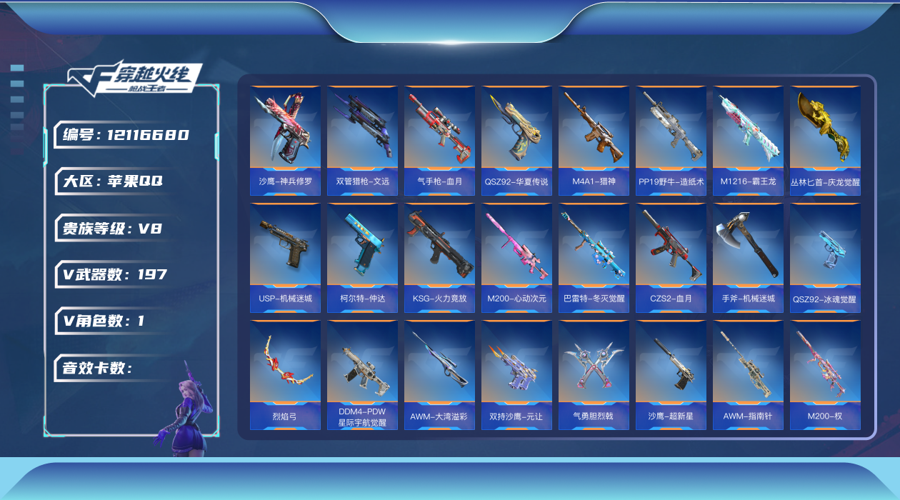 [12116680]可二次 可修改实名 V8 18王者武器 197英雄武器 1英雄角色 215万化 大师 武器:王者之影,王者之心,王者之翎,王者之神,M12S-雷霆王者,AK47-奉先,AK47-孟德,M4A1-星象,M200-幻神,王者之啸,COP 357-堕天神,COP 357-雷霆,AK47-雷暴,AK47-木兰,M4A1-游骑兵,M4A1-黑骑士,M4A1-死神,AK47-火麒麟,M4A1-雷神,M4A1-机械迷城,巴雷特-极光,巴雷特-毁灭,AK47-猩红传说,AK47-血武士,AK47-华夏传说,M4A1-猎神,M4A1-龙血,M4A1-海骑士,巴雷特-冬灭觉醒,09式狙-天神,M200-心动次元,暗杀星,黑龙魂,AA12-火药,KSG-火力竞放,PP19野牛-造纸术,地狱火,CZS2-血月,AK47-破空冰刃,M1216-霸王龙,沙鹰-孟德,柯尔特-仲达,双管猎枪-文远,尼泊尔-星象,沙鹰-修罗,USP-机械迷城,沙鹰-超新星,气手枪-血月,沙鹰-神兵修罗,COP 357-雷霆王者,QSZ92-华夏传说,手斧-机械迷城,尼泊尔-竞界荣光,尼泊尔-铜头铁臂,王者之翼闪光弹,王者之翼烟雾弹,王者之心闪光弹,王者之心烟雾弹,王者之势闪光弹,USP-神罚,神罚战斧,丛林匕首-庆龙觉醒,屠龙,血月,雷霆王者之锋,烟雾弹-雷暴,黑骑士闪光弹,黑骑士烟雾弹,闪光弹-游骑兵,烟雾弹-游骑兵,雷神烟雾弹,手雷-云海游龙,高爆手雷-雷霆王者,烟雾弹-雷霆王者,王者之霆,DDM4-PDW-星际宇航觉醒,CZS2-仲康,气勇胆烈戟,王者之竞手雷,手雷-鼓龙,手雷-星象,分裂雷-偃蛇,双持沙鹰-元让,王者之业,GLOCK18-猎神,左轮-卧龙觉醒,COP 357-安琪拉,AWM-指南针,M200-权,烟雾弹-星际宇航,QSZ92-冰魂觉醒,烈焰弓,手雷-游骑兵,AWM-大湾溢彩